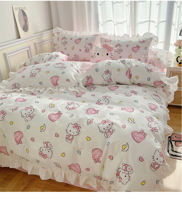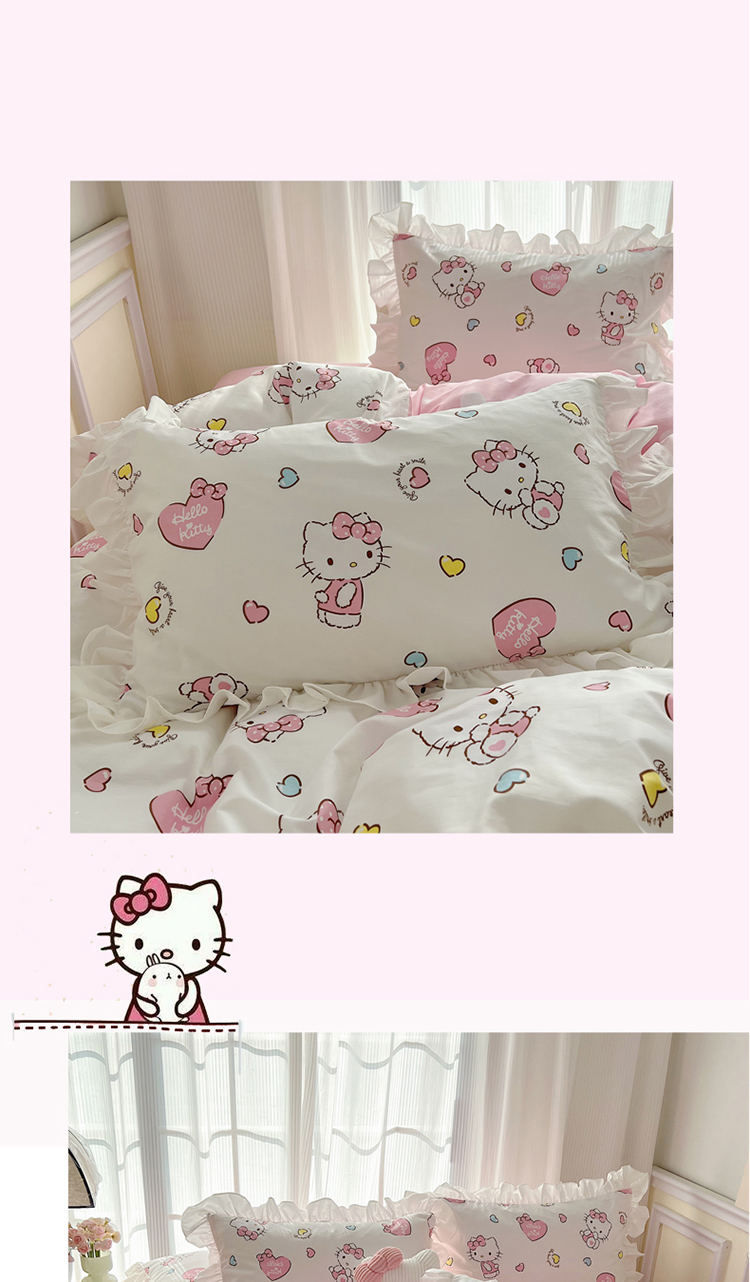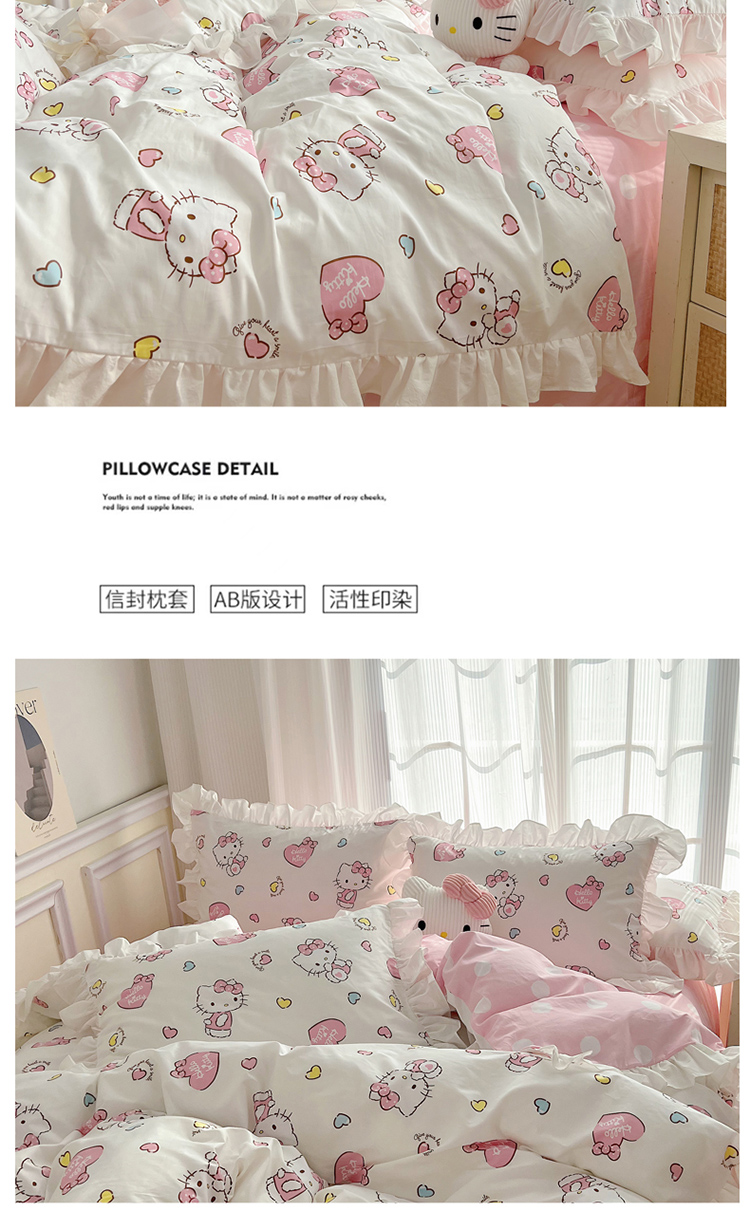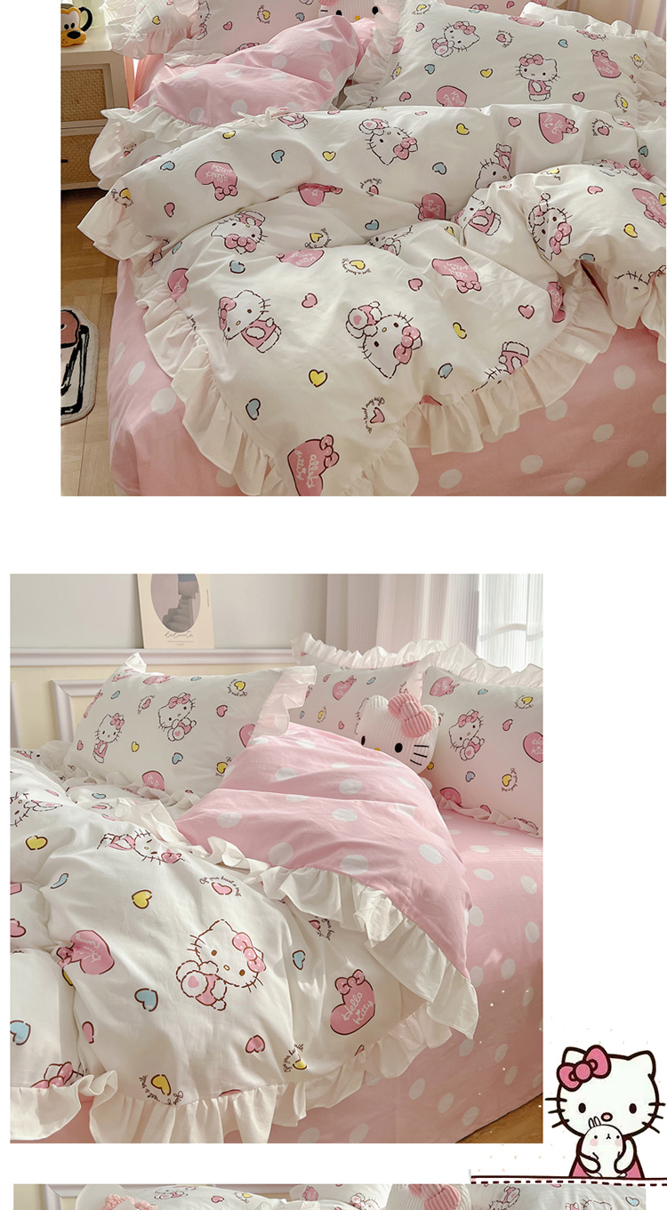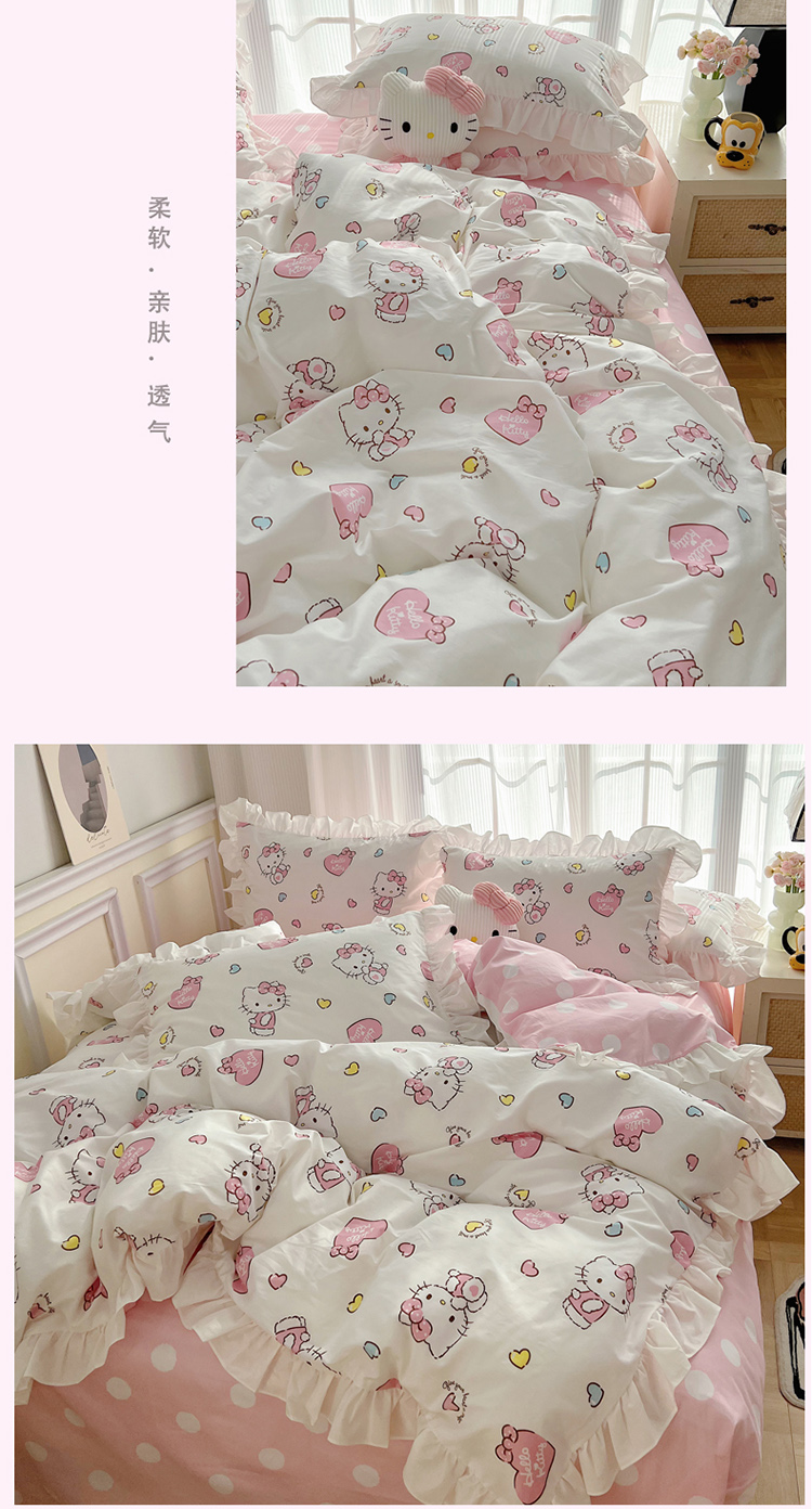 三朵 2024年全棉白色花边三丽鸥系列四件套 花边-糖果KT