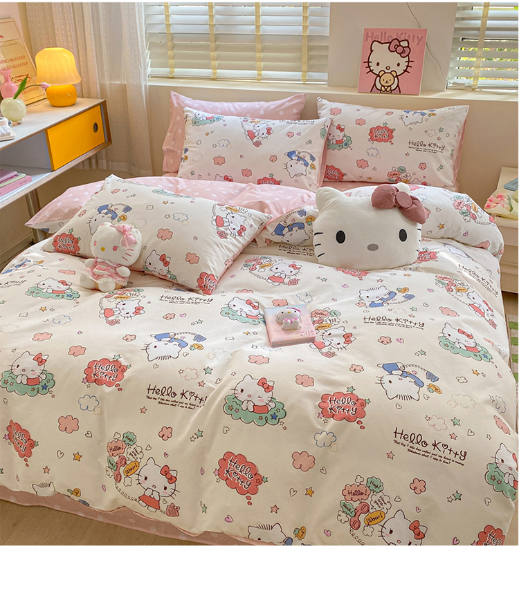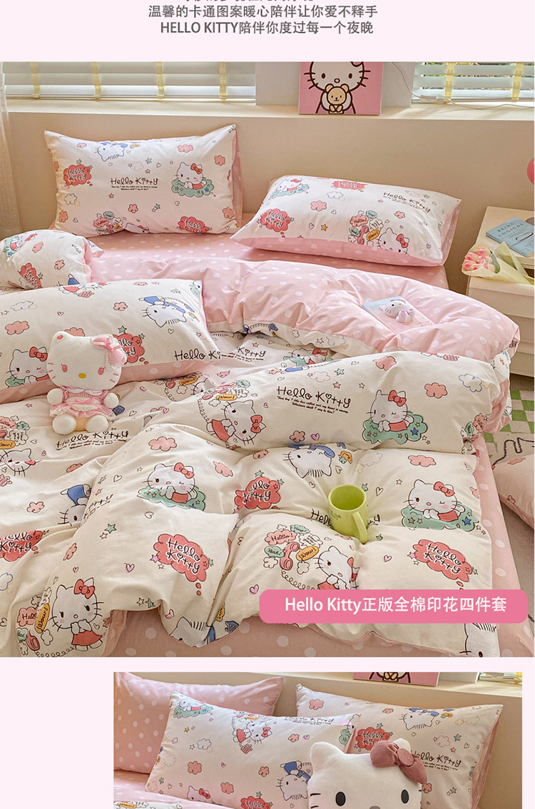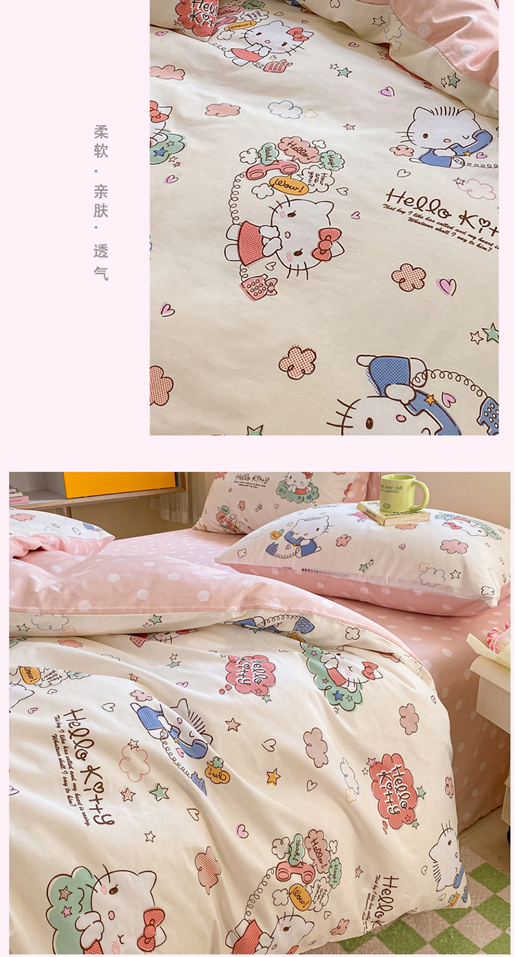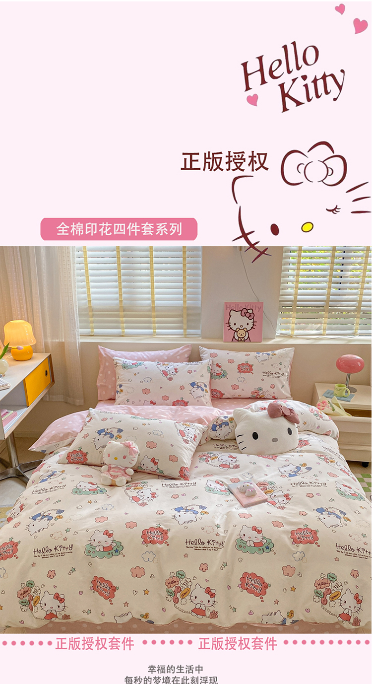 商品名称:三朵 2024年全棉简单款三丽鸥系列四件套 梦想KT