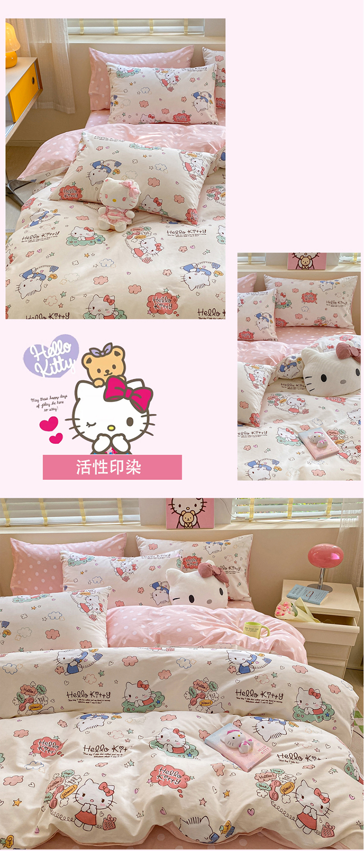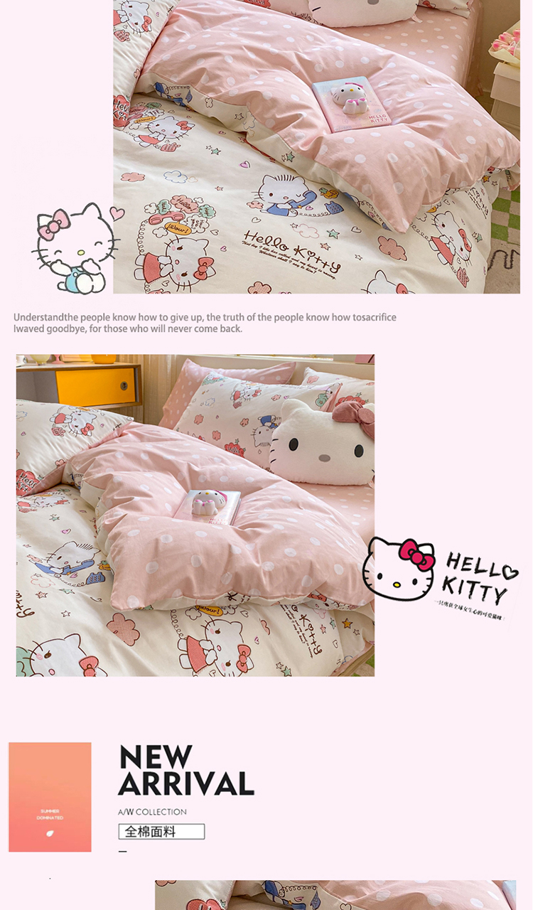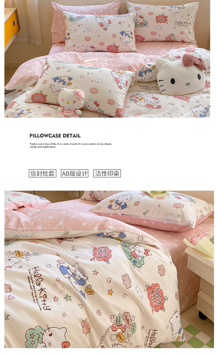 商品名称:三朵 2024年全棉简单款三丽鸥系列四件套 梦想KT