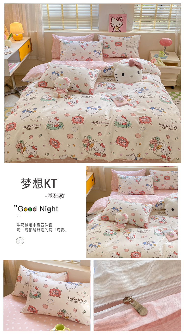 (总)三朵家纺 2024新款全消光三丽鸥印花牛奶绒系列四件套,爱心凯蒂,街舞库洛米,凯蒂公主,乐园KT,漫画帕恰,美好帕恰,美乐蒂格格,淘气帕恰,甜蜜公主KT,童心帕恰,艺术家库洛米,运动帕恰,字母帕恰