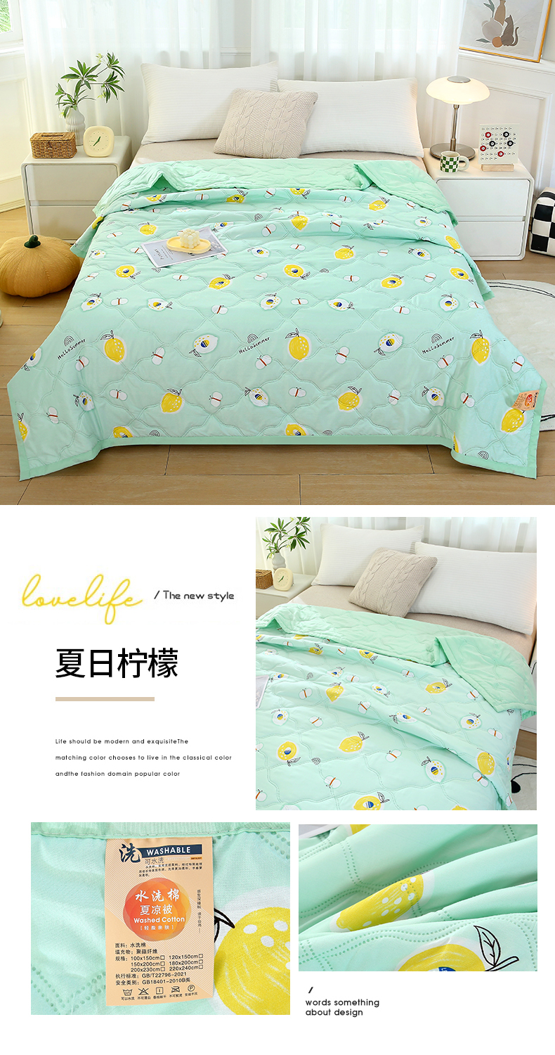 商品名称:爱派 2024直播爆款印花水洗棉夏被夏凉被空调被被子被芯 夏日柠檬