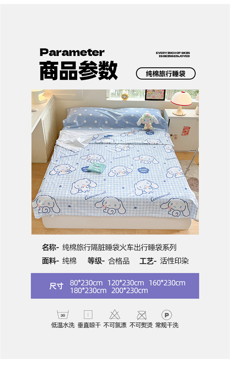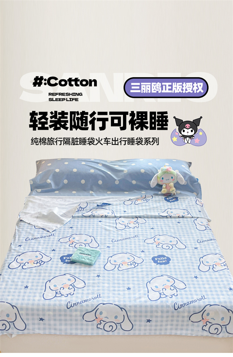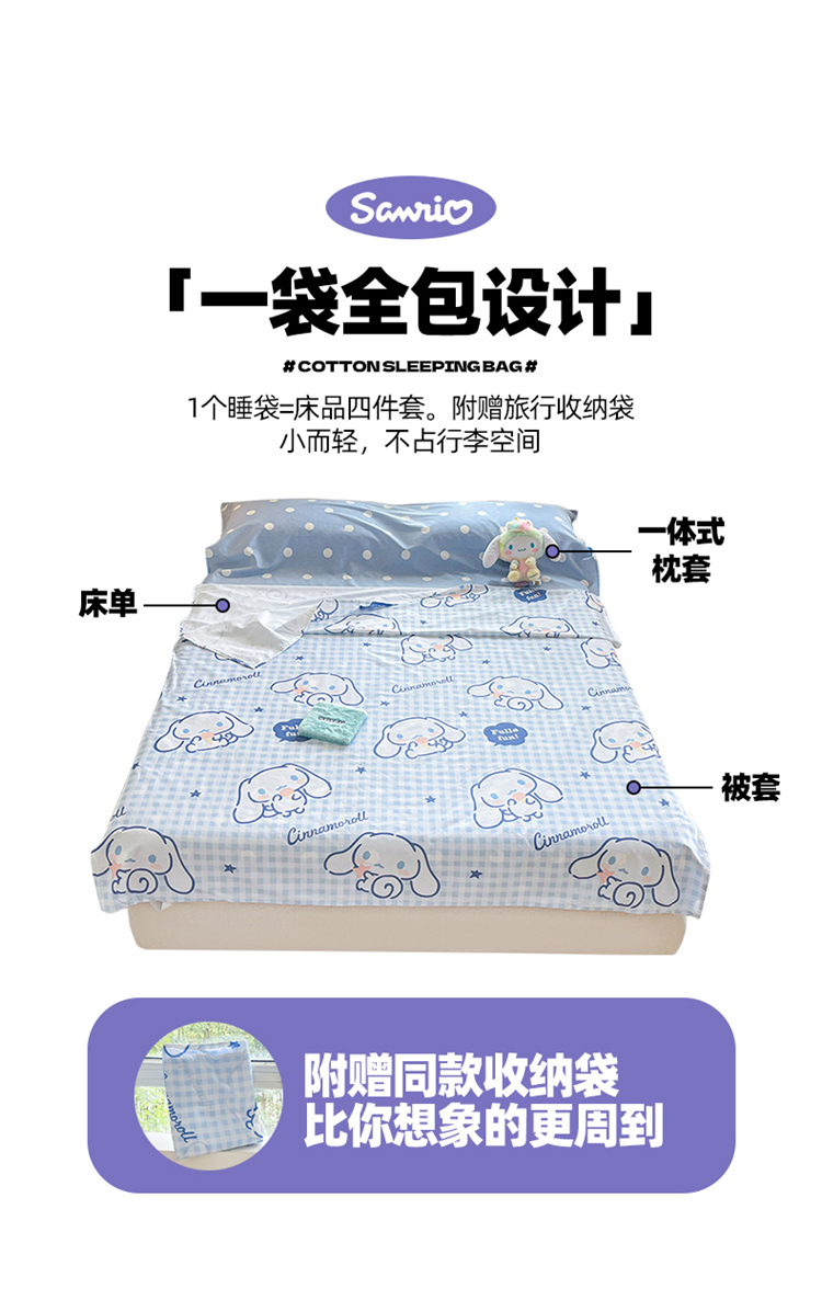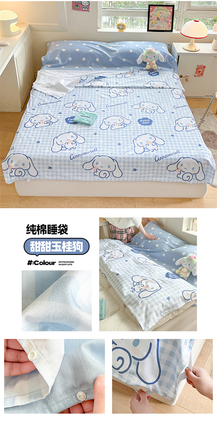 • 91家纺网 家纺一手货源 找家纺 金爱家 2024新款三丽鸥正版授权纯棉旅行隔脏睡袋火车出行睡袋系列(送同款收纳袋) 纯棉睡袋-甜甜玉桂狗