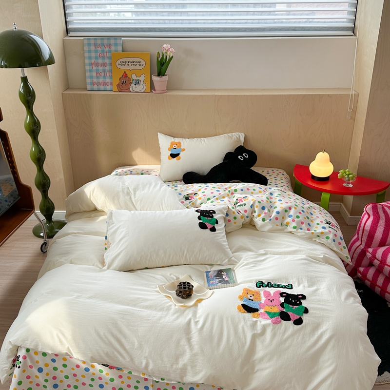 (总)柚子YOUTH 2025新款全棉双层纱贴布绣四件套,棒球熊猫,贝雷帽,冰淇淋小熊,格子玩偶,碎花小兔,小黑猫