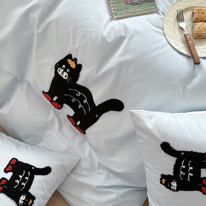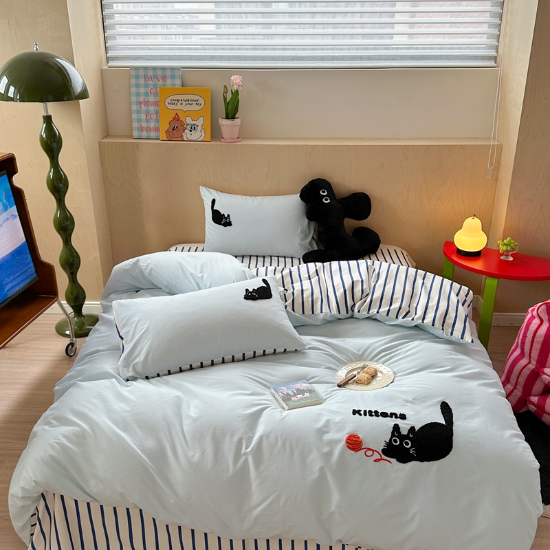 (总)柚子YOUTH 2025新款全棉A类母婴级卡通绣花四件套,吹泡泡,汉堡小猫,马上有钱,女孩的礼物,小狗面包,月亮船