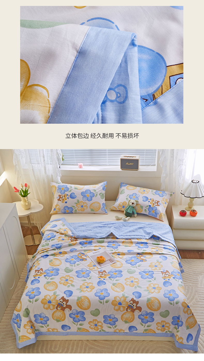 商品名称:金柚子2024新款全棉印花夏凉被 俏皮松鼠-蓝
