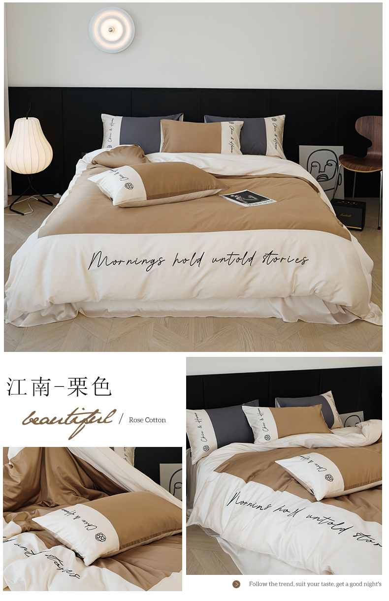 当前位置: 91家纺网 > 商品网购 > 床品套件 > 四件套 > 全棉普通四件套 > 2024春夏新款天丝棉四件套--江南系列(英文版) 江南-栗色