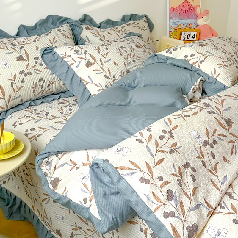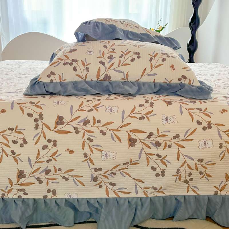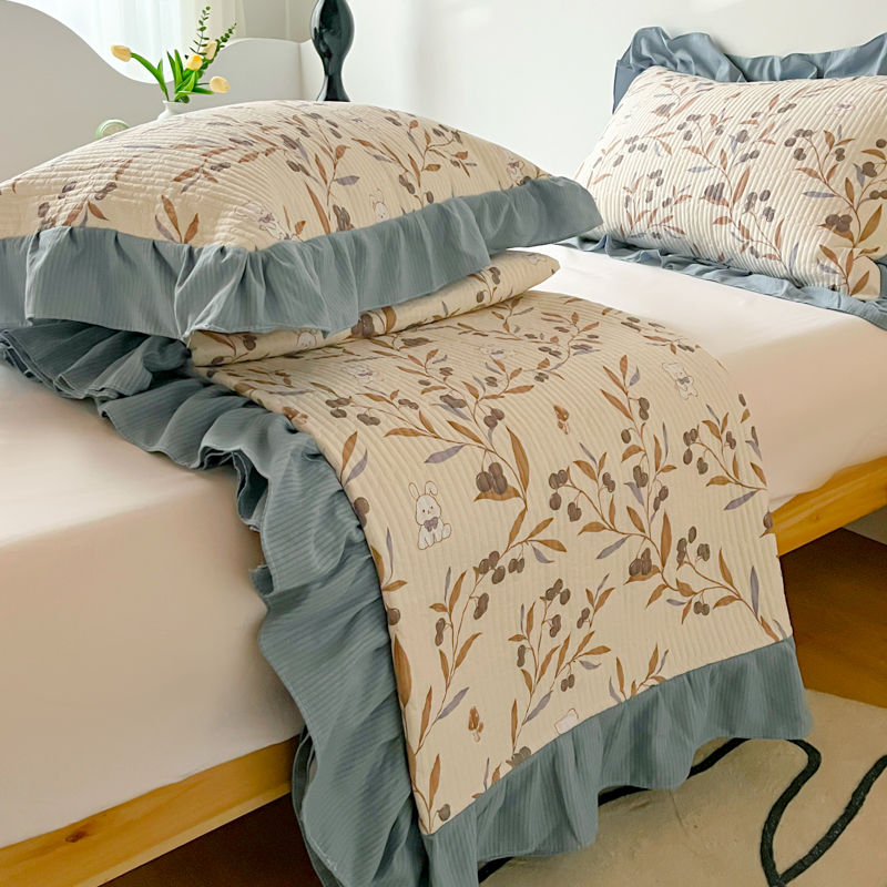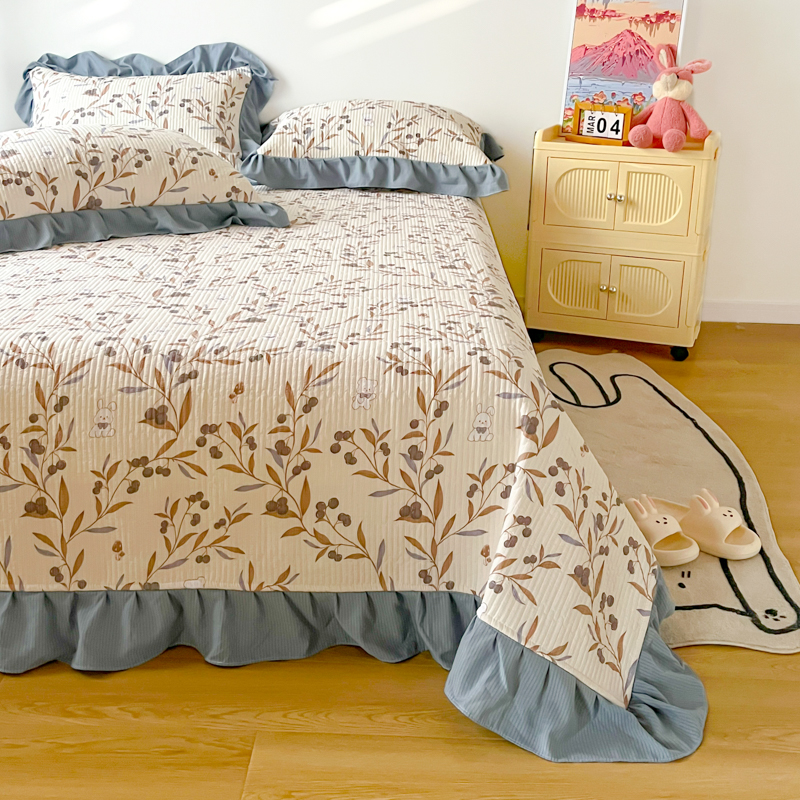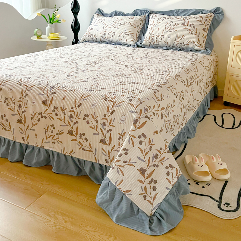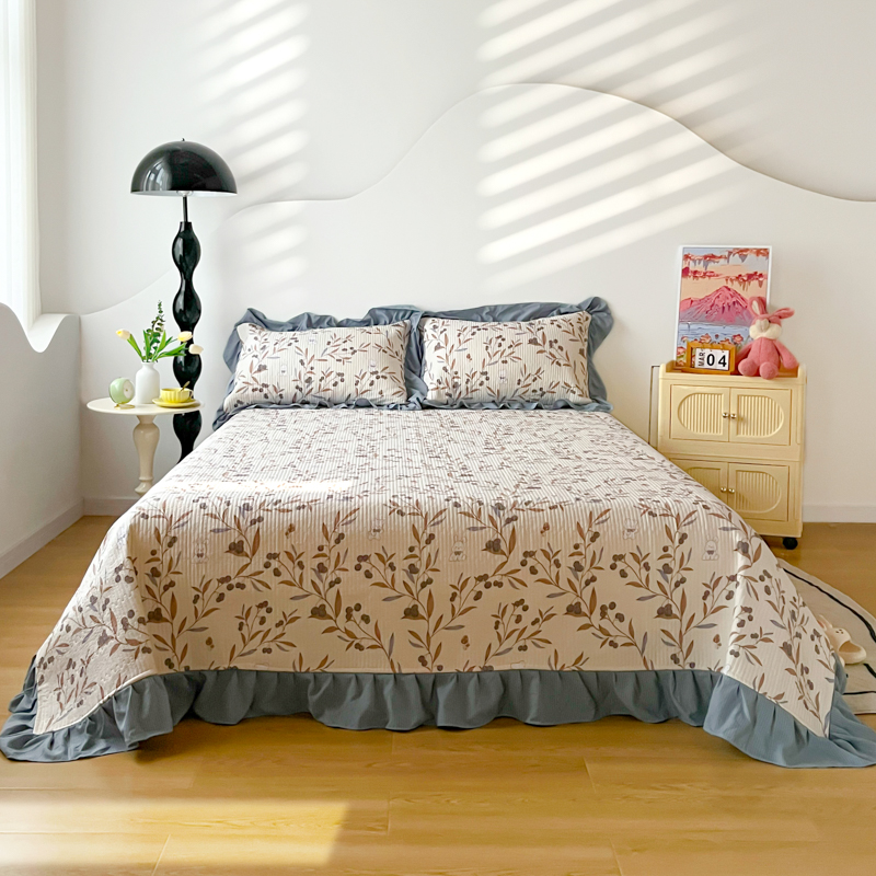 子曰 2024新款印花素色花边床盖三件套四件套 繁花