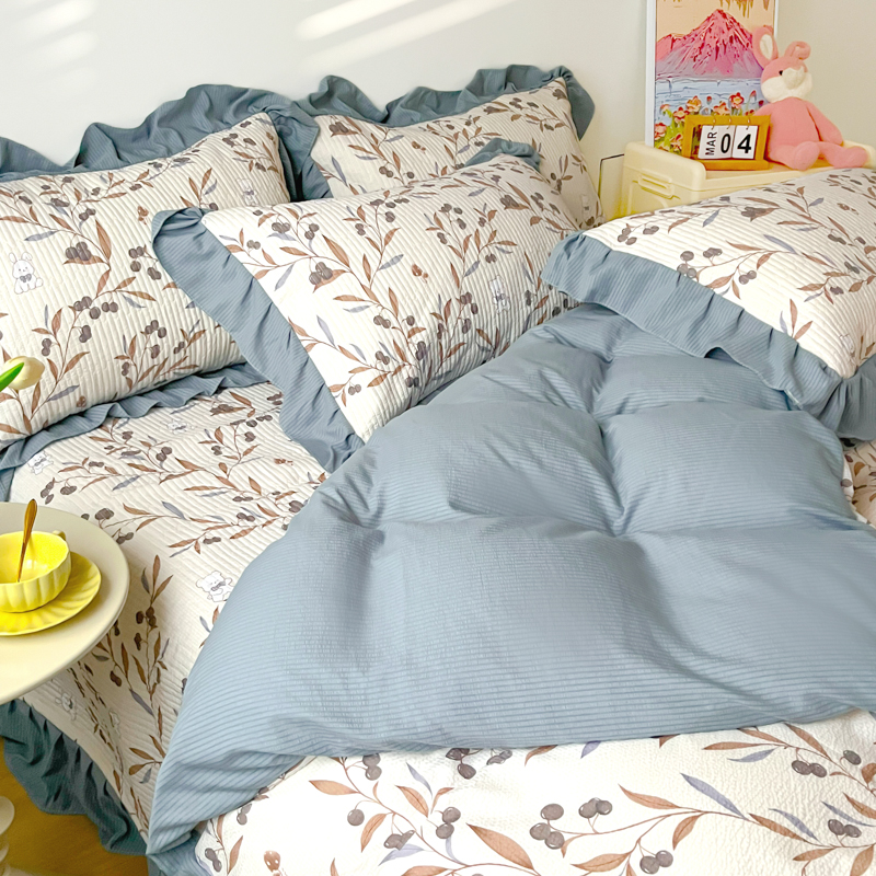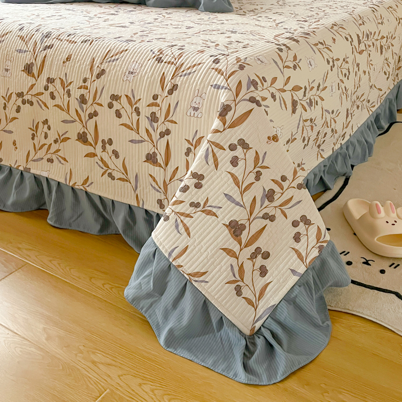 商品名称:子曰 2024新款印花素色花边床盖三件套四件套 繁花