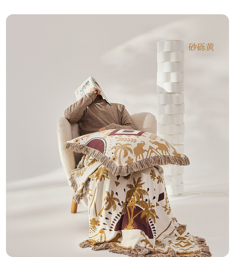 暖绵绵家纺 2025新款丛林时光抱枕 砂砾黄