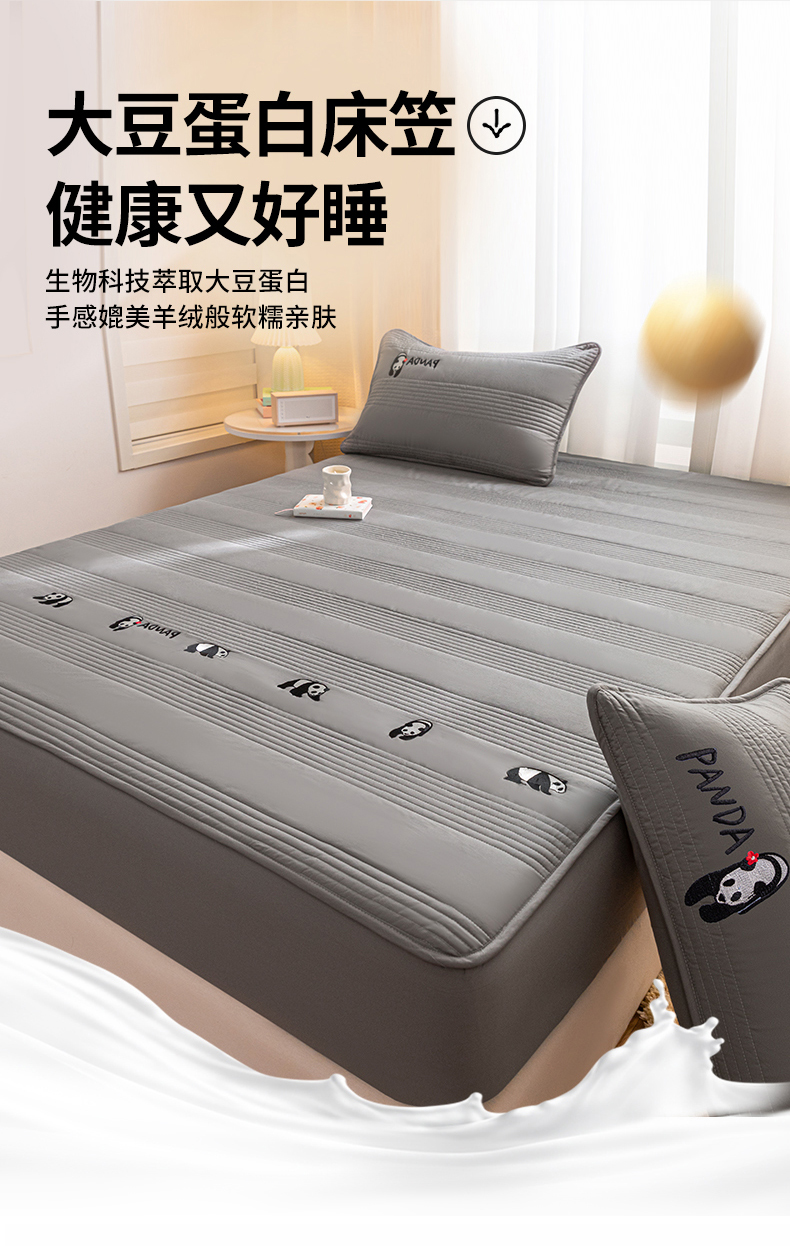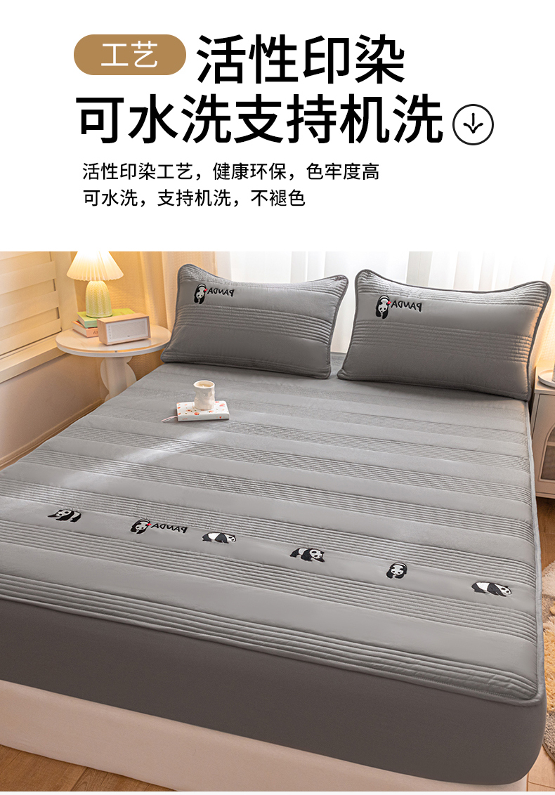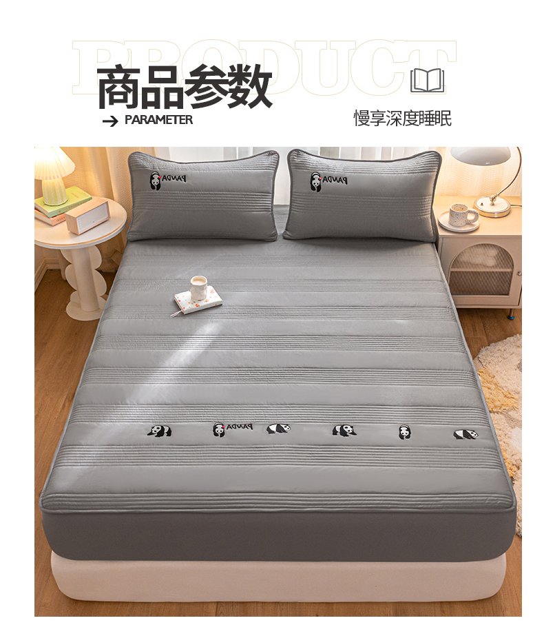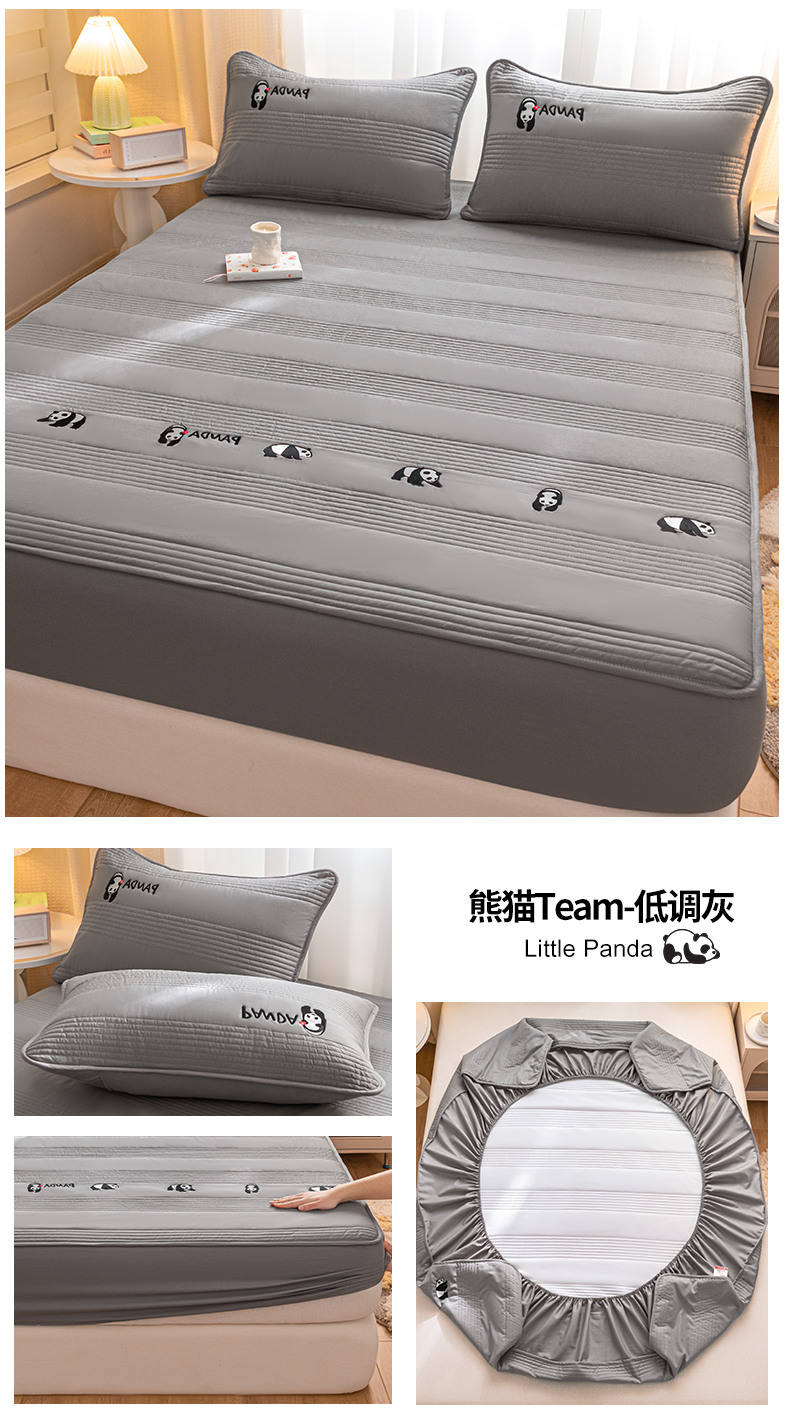 • 91家纺网 家纺一手货源 找家纺 鑫钰 2024全棉大豆夹棉床笠 熊猫Team-低调灰