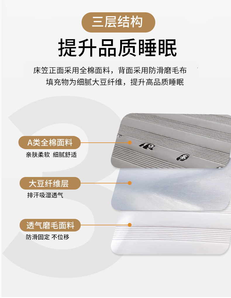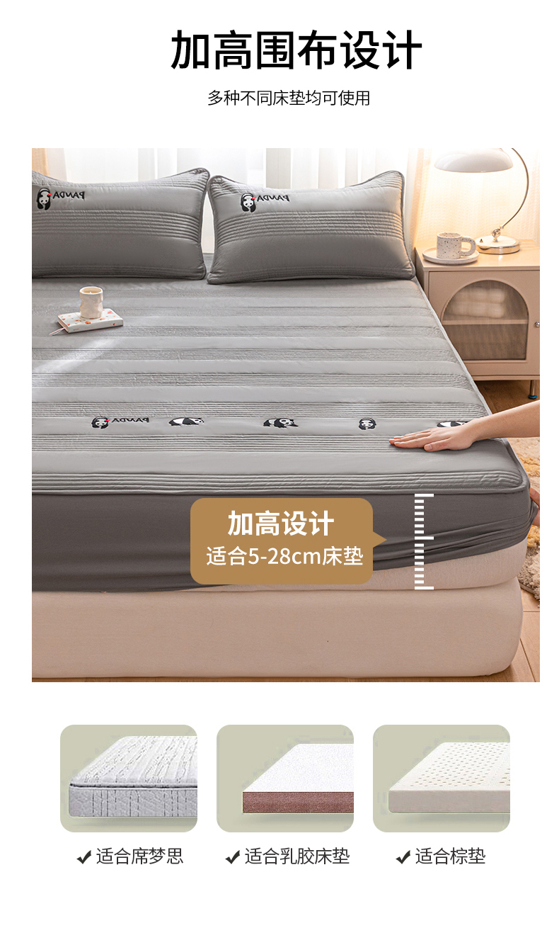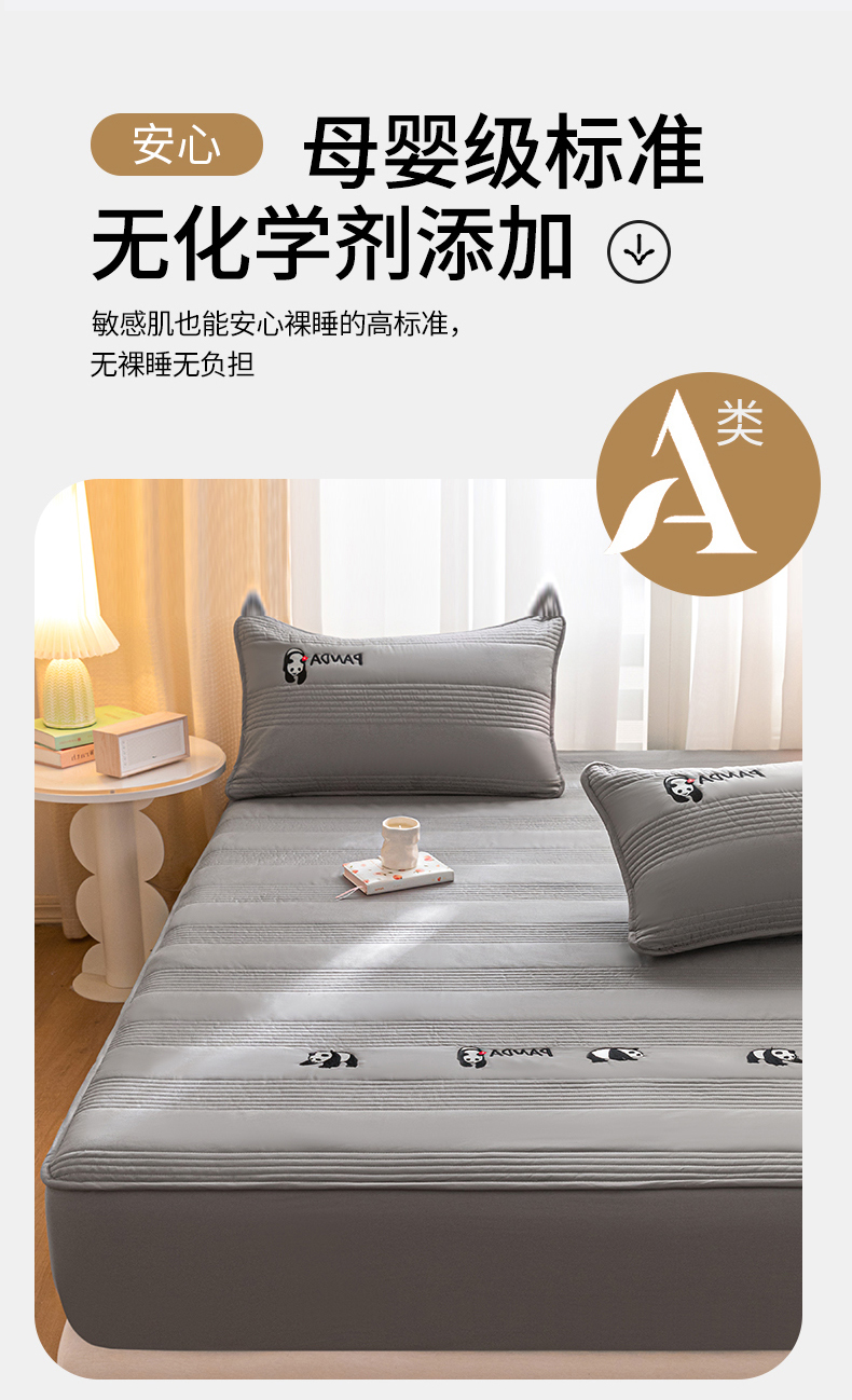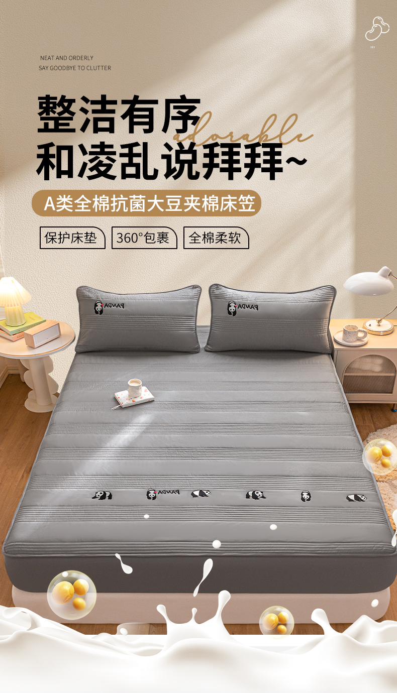 • 91家纺网 家纺一手货源 找家纺 鑫钰 2024全棉大豆夹棉床笠 熊猫Team-低调灰