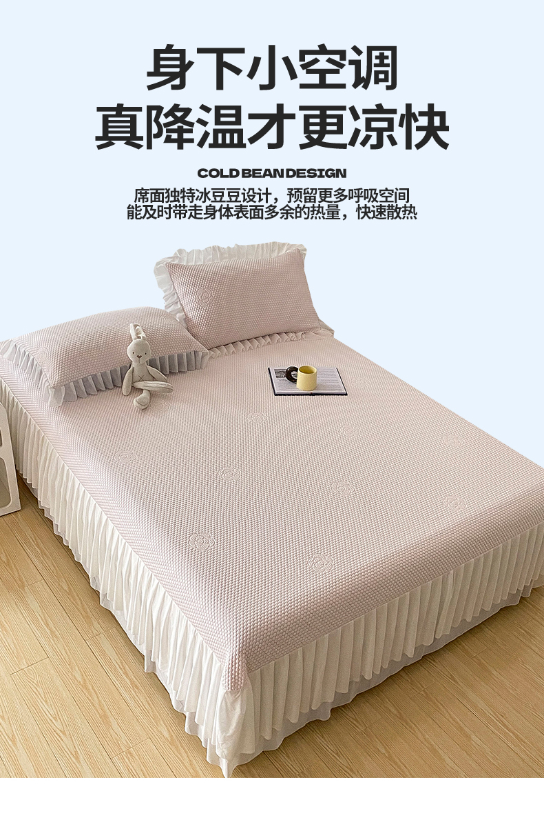 当前位置: 91家纺网 > 商品网购 > 床上用品 > 凉席 > 其他凉席 > 2024新款抗菌凉豆豆提花床裙款凉席-花朵系列 冰豆豆花朵系列-床裙款 蜜桃粉