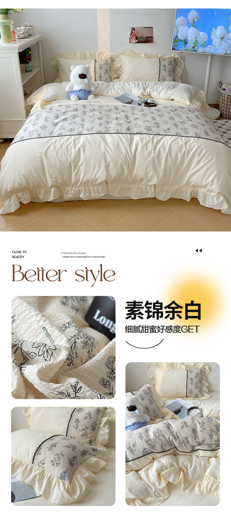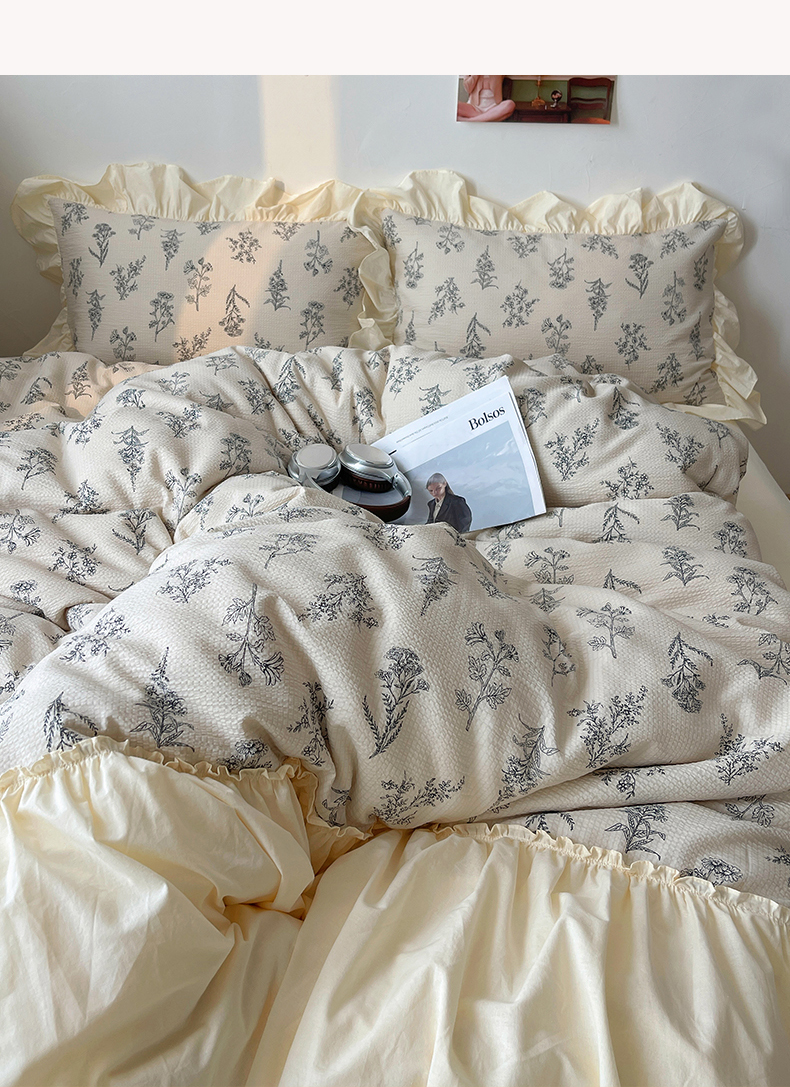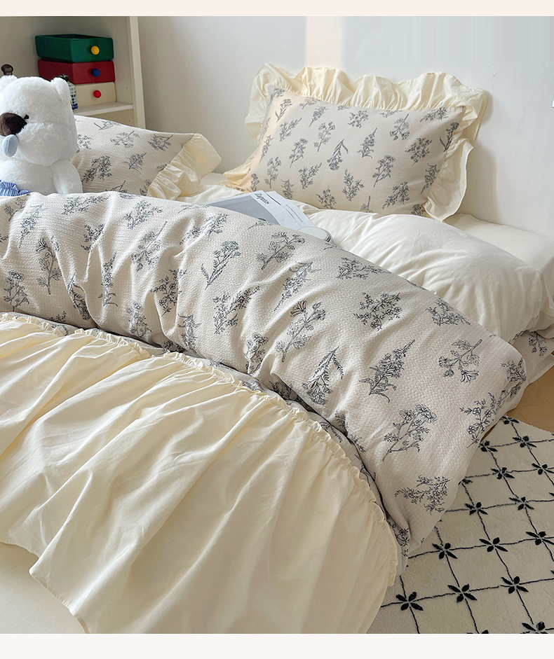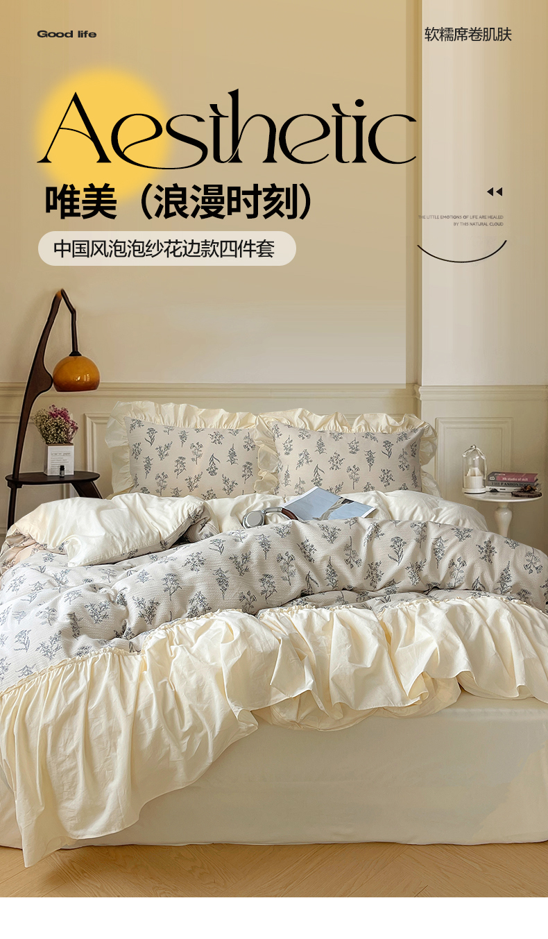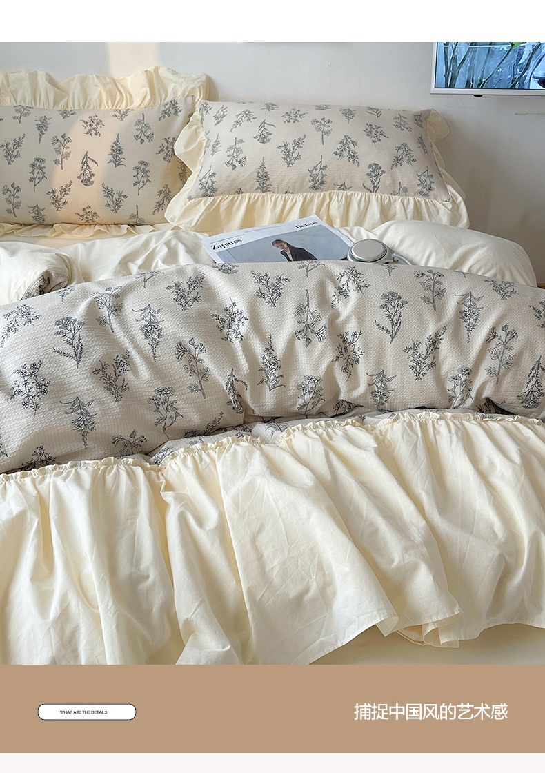 商品名称:轻奢坊2024新款田园风法式花边四件套-素锦系列 素锦余白