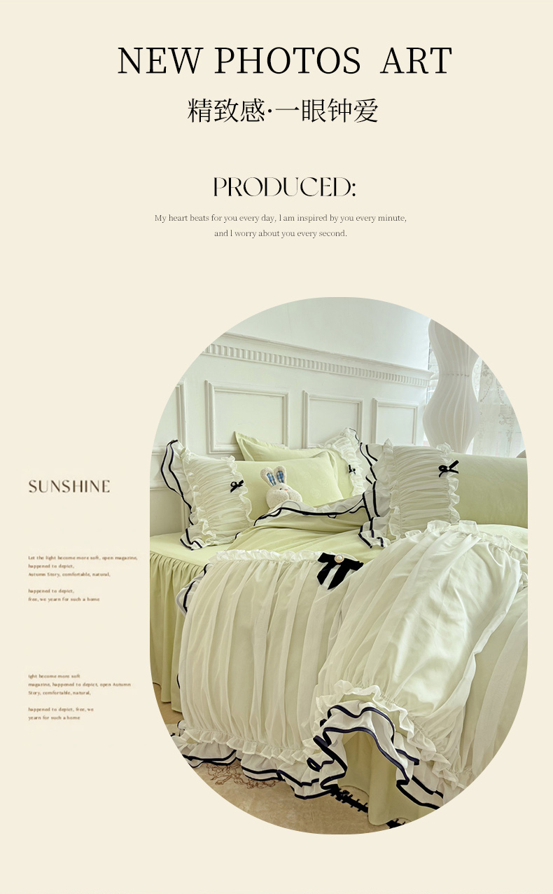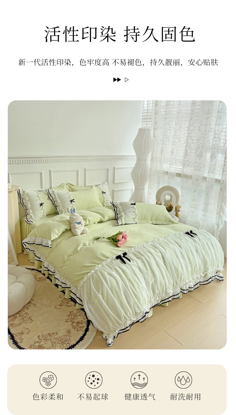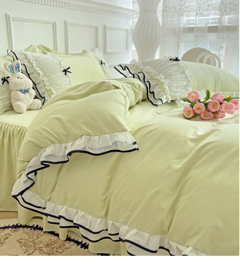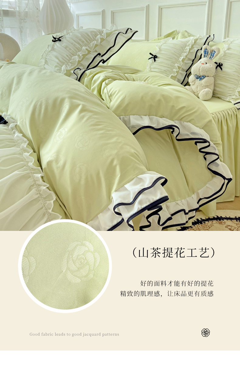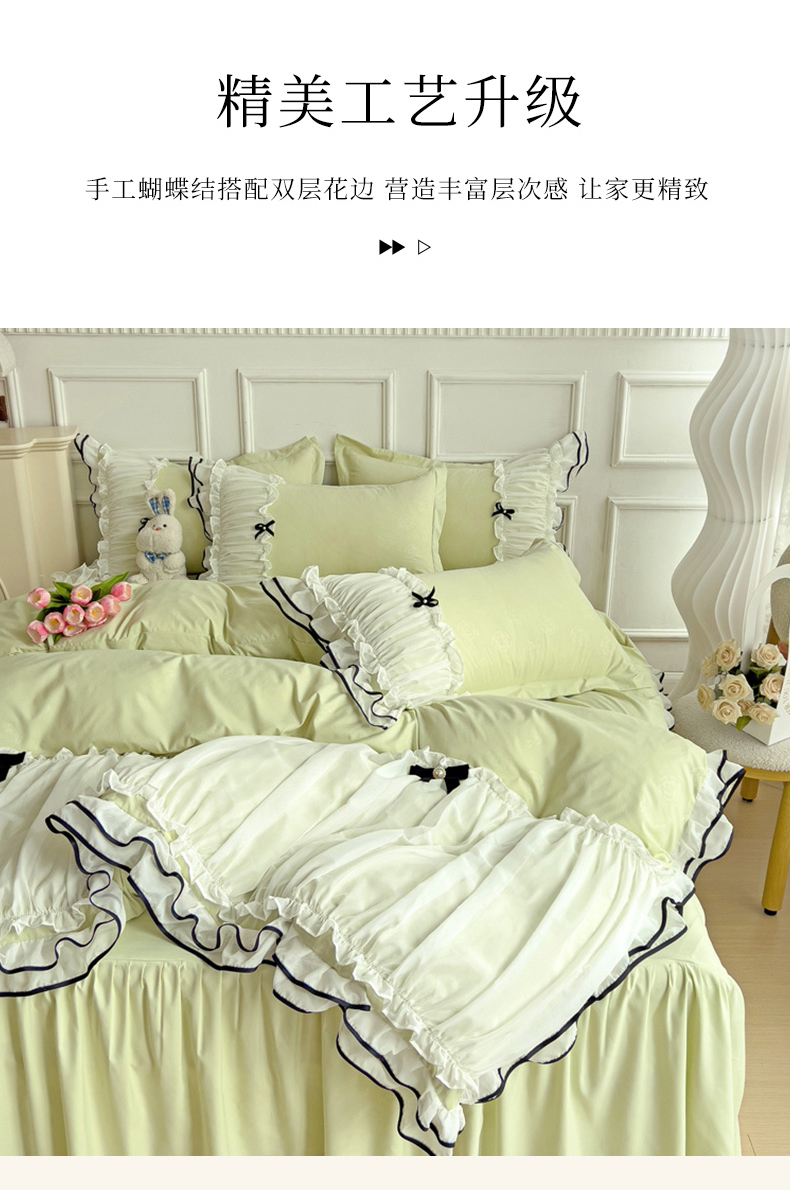 当前位置: 91家纺网 > 商品网购 > 床品套件 > 四件套 > 化纤活性四件套 > 包小包 2024新款臻丝棉小香风提花双层花边韩版公主风四件套(提供买家秀) 小香风-奶绿