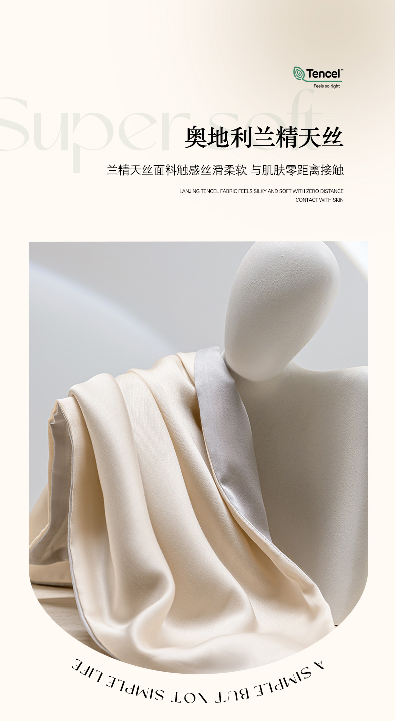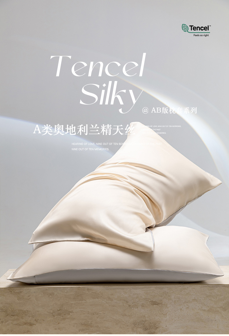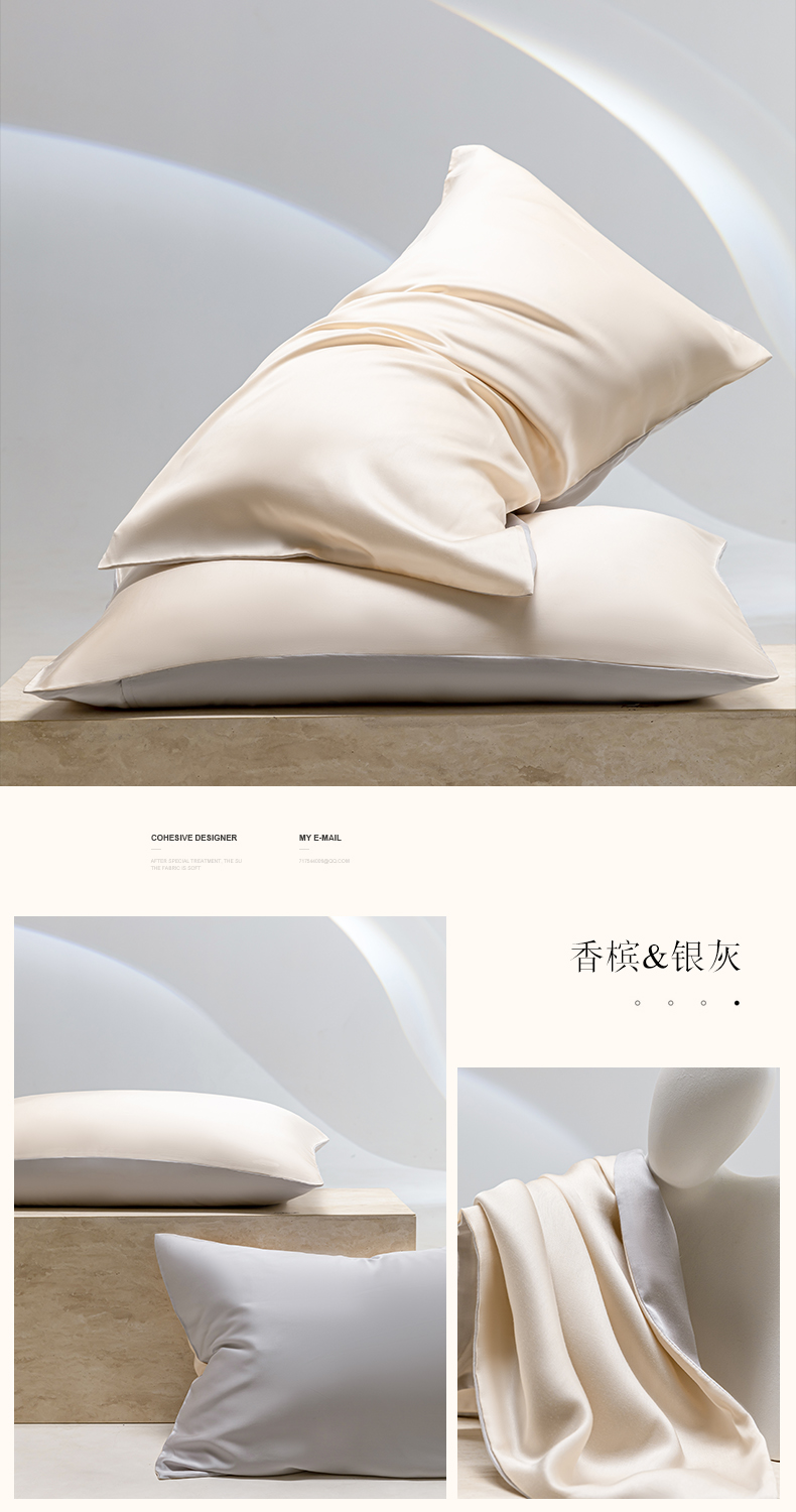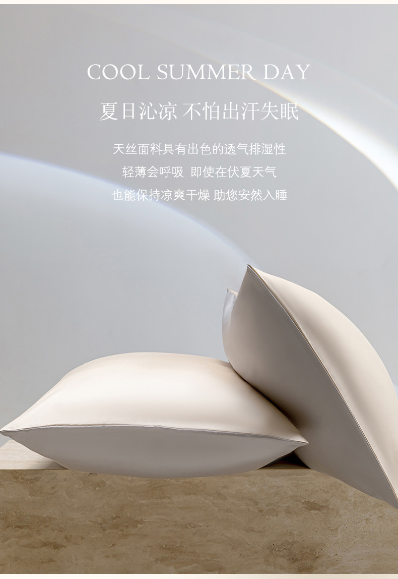 商品名称:云栖家居 202460支A类兰精天丝系列单品枕套(风格一) 香槟+银灰