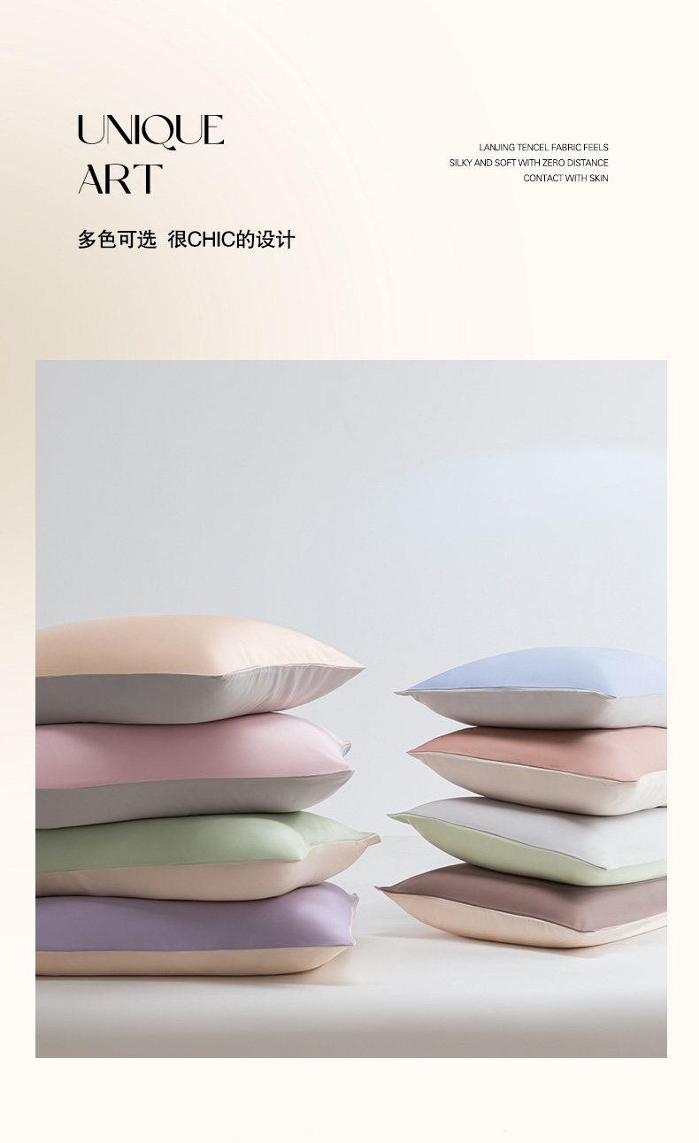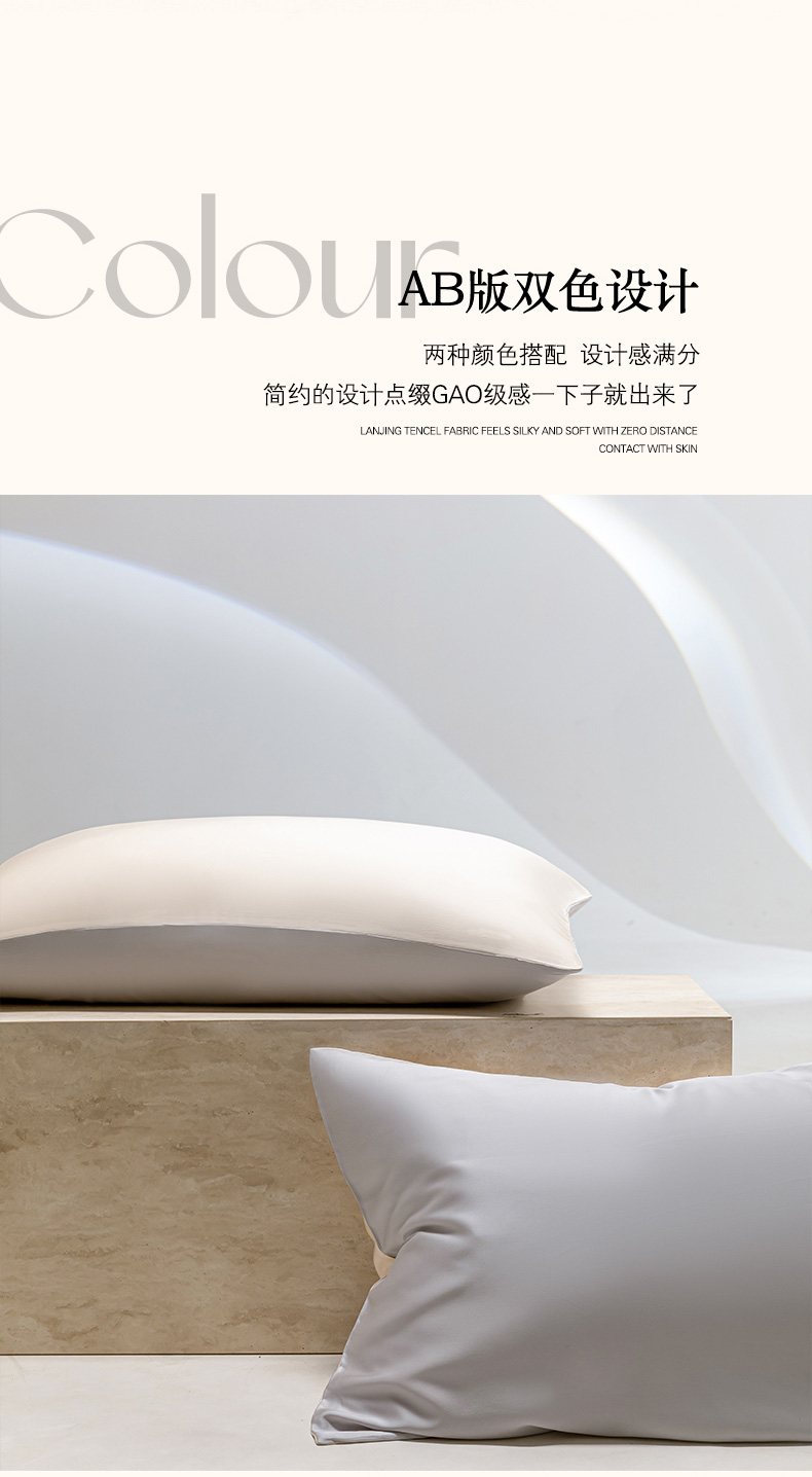 云栖家居 202460支A类兰精天丝系列单品枕套(风格一) 香槟+银灰
