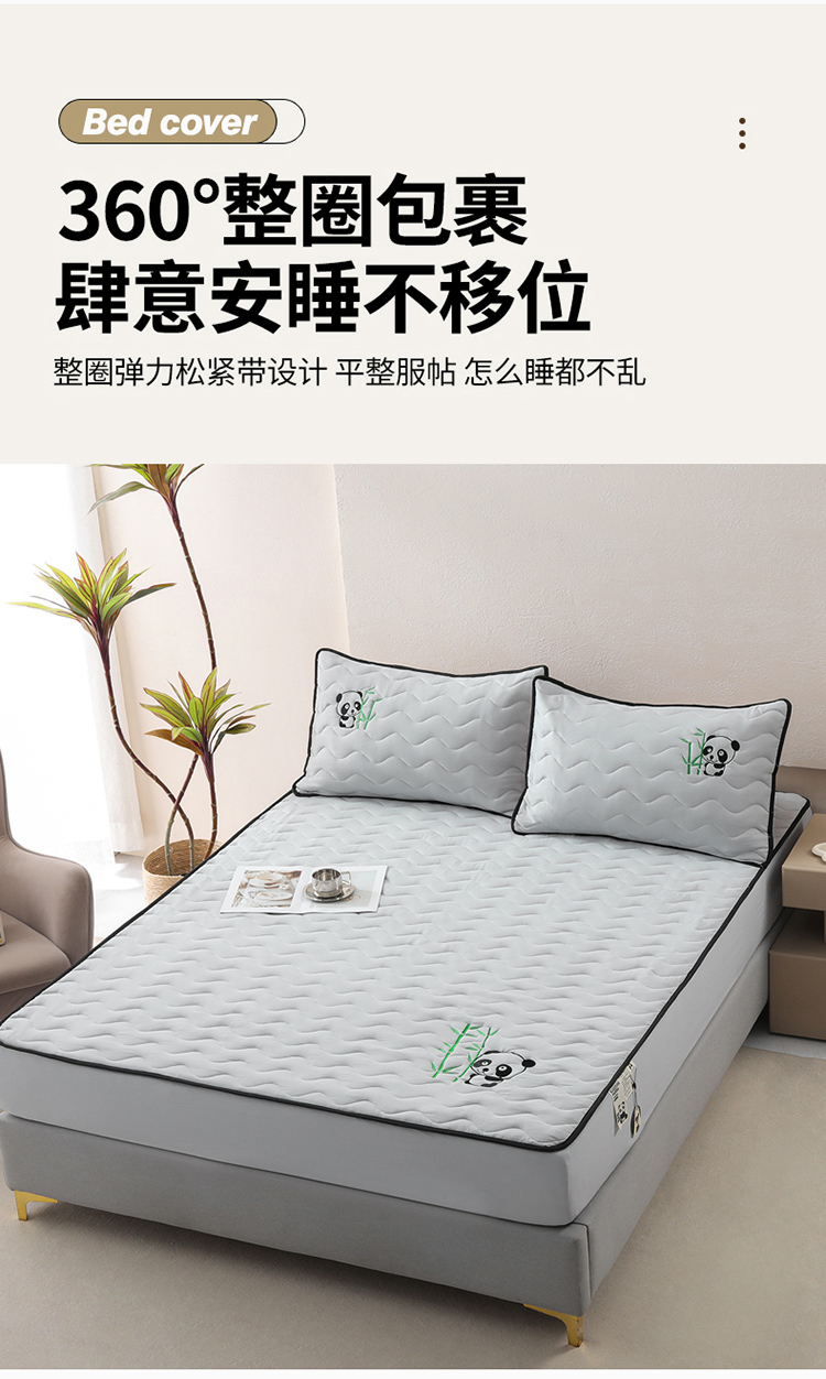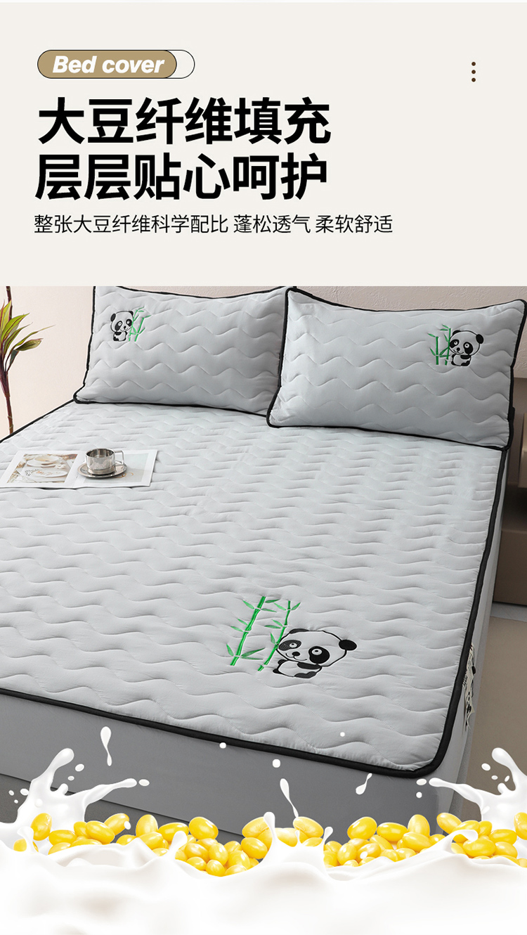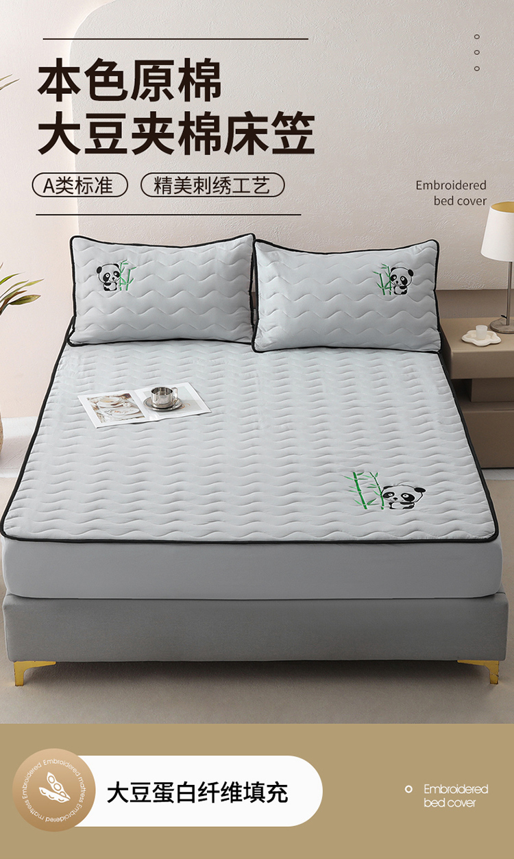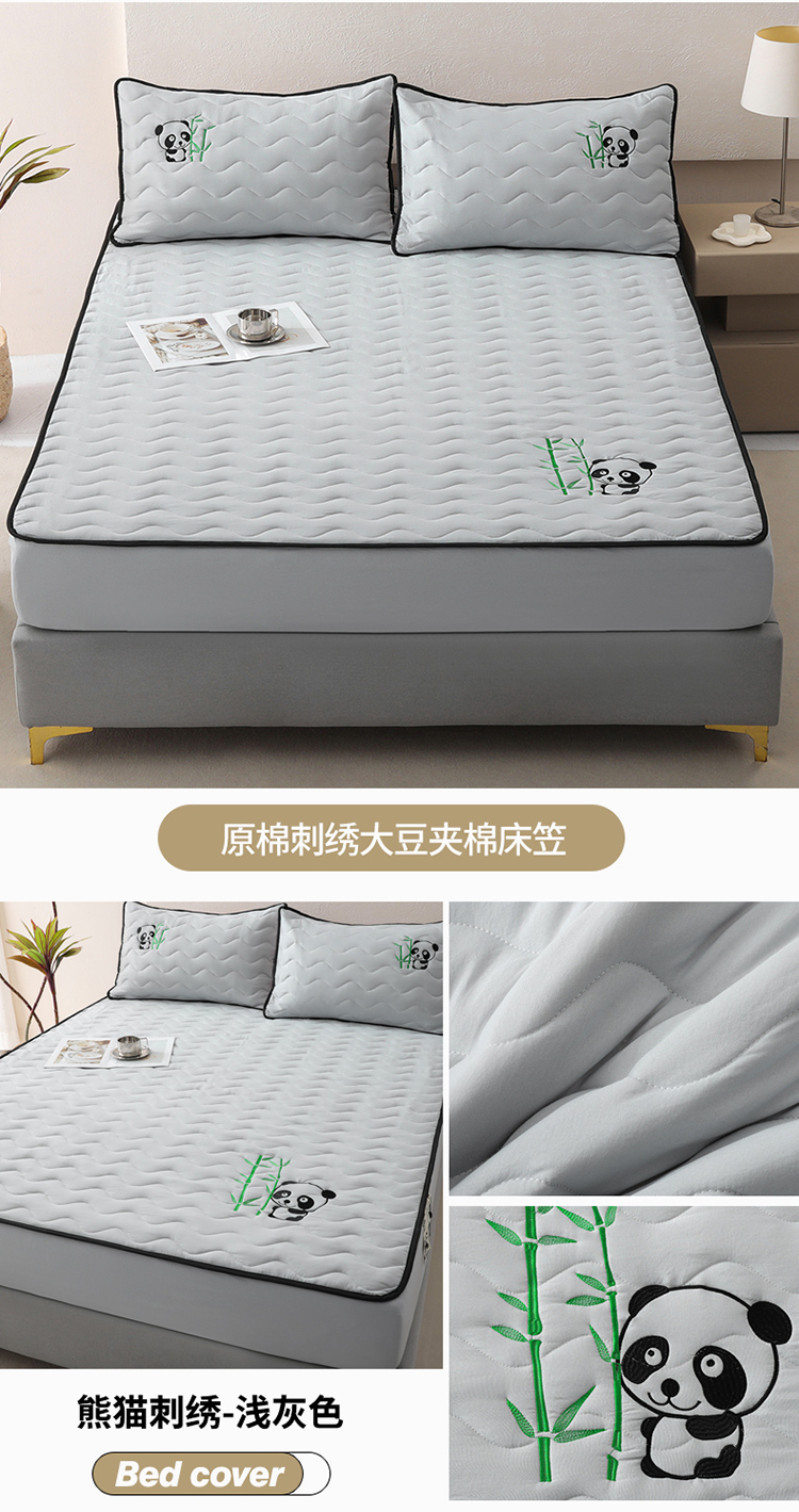 • 91家纺网 家纺一手货源 找家纺 恒尚居 2024新款熊猫刺绣水洗原棉大豆床笠-四季款 浅灰色