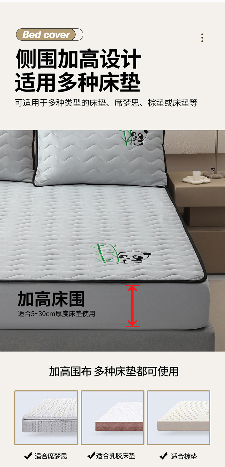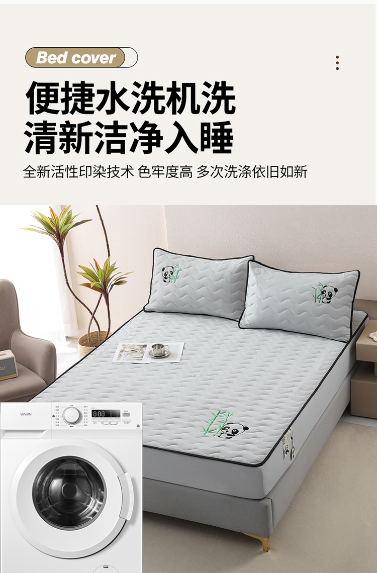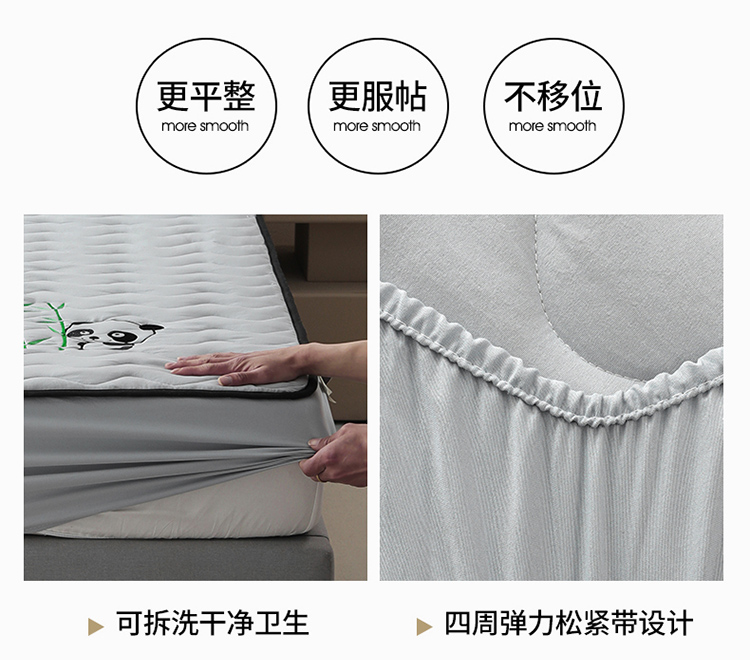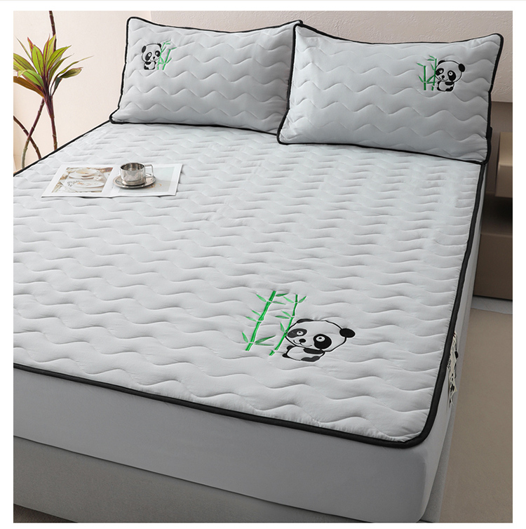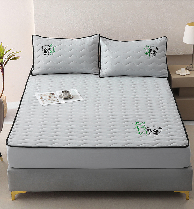 • 91家纺网 家纺一手货源 找家纺 恒尚居 2024新款熊猫刺绣水洗原棉大豆床笠-四季款 浅灰色