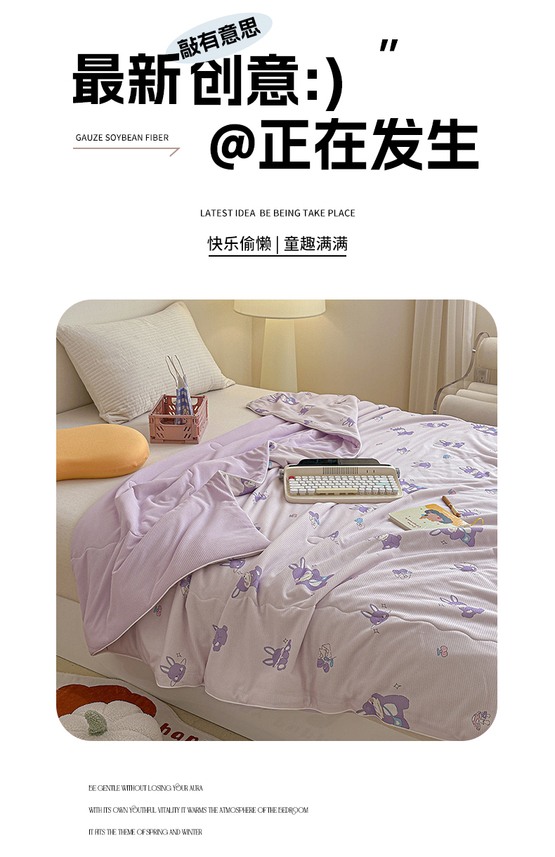 源舜家纺 2025新款印花系列针织华夫格夏被 萌萌兔