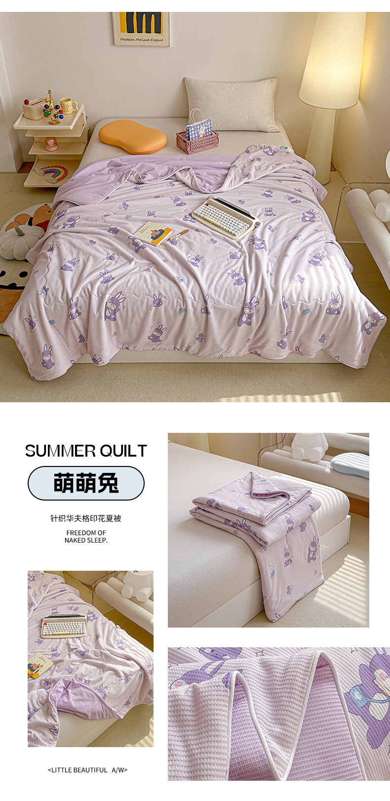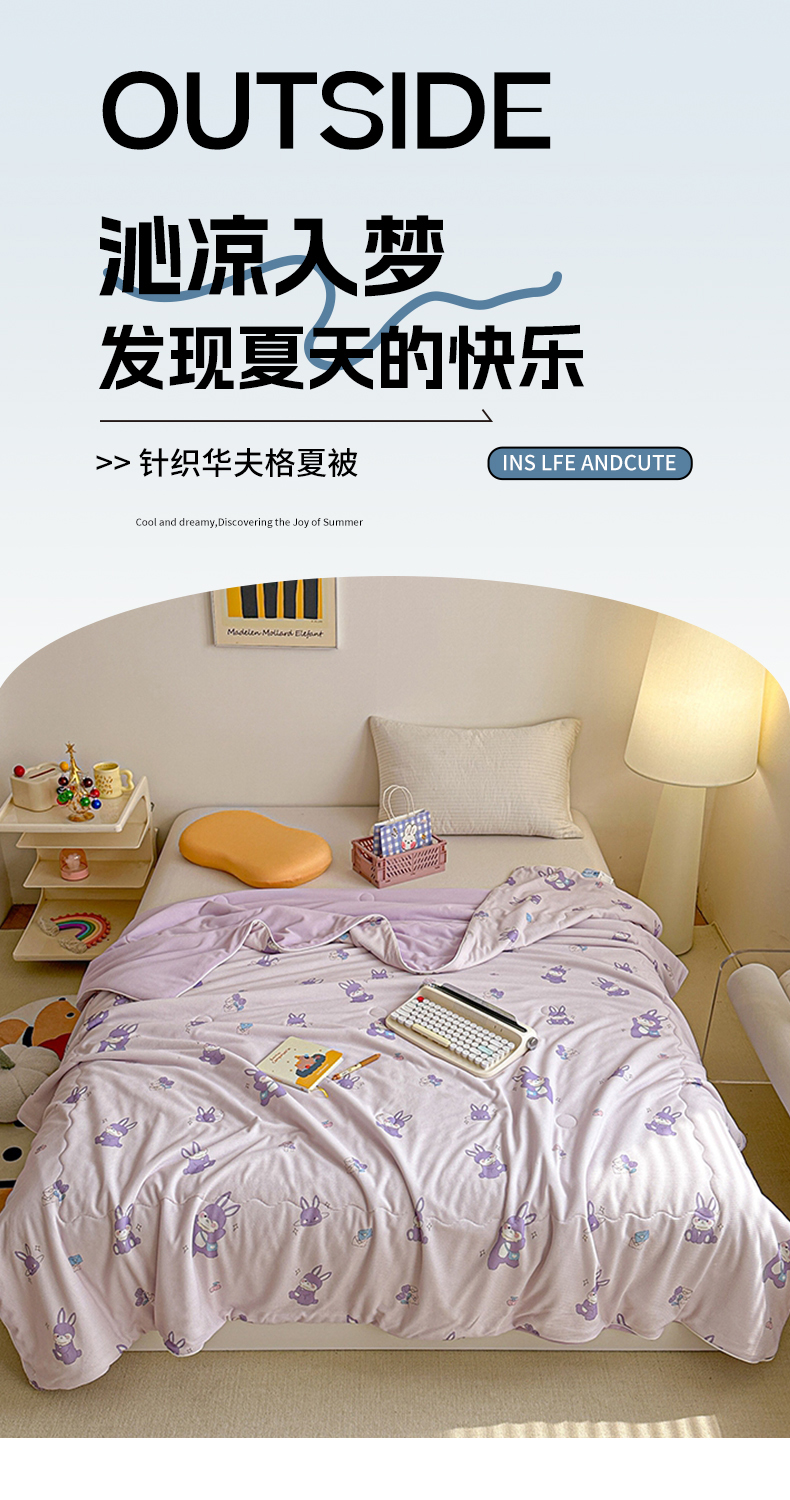 商品名称:源舜家纺 2025新款印花系列针织华夫格夏被 萌萌兔