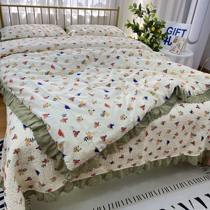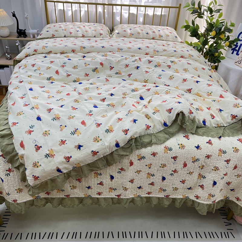 (总)暖居 2026新款大尺寸双层纱高温砂洗245X265床盖三件套,车厘子,粉绿格,洛璃,米妮,旺旺队,小丸子,樱桃可可,饼干熊,木马,小星星