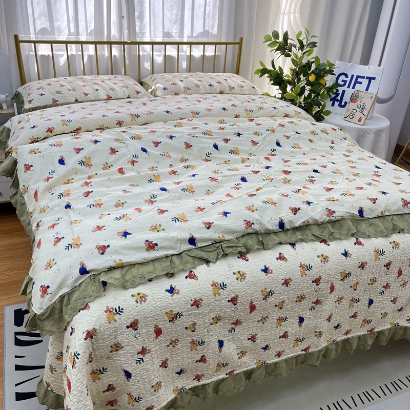 (总)暖居 2026新款支持定制法式花边纯棉榻榻米四件套全棉大炕盖三件套四季通用,白山茶,海盐兔,赫本白,晨暮间,灰格蝴蝶结,奶油点点,波点紫,豹纹KT,南法假日,浅咖,时尚小香,碎花兔蓝,旺仔紫色,小美好,小甜橘,小香格子,雅格,中国美
