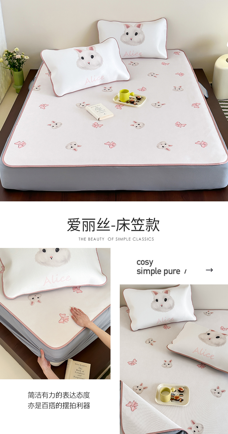 三味舒屋 2025新款ins韩风小卡通数码印花冰丝席-床笠款 爱丽丝-床笠款