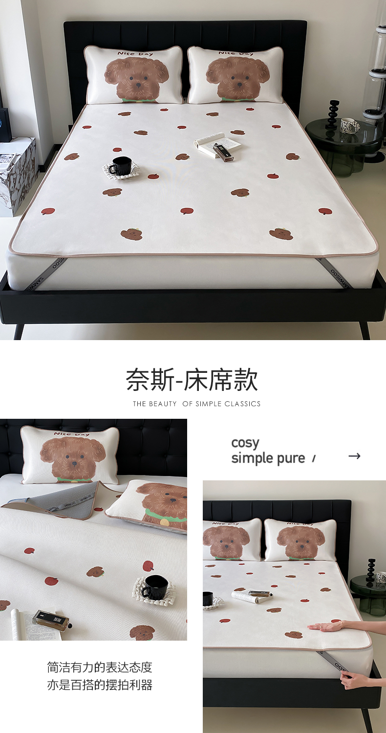 商品名称:三味舒屋 2025新款ins韩风小卡通数码印花冰丝席-床席款 奈斯-床席款