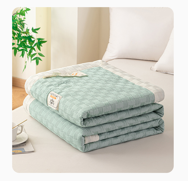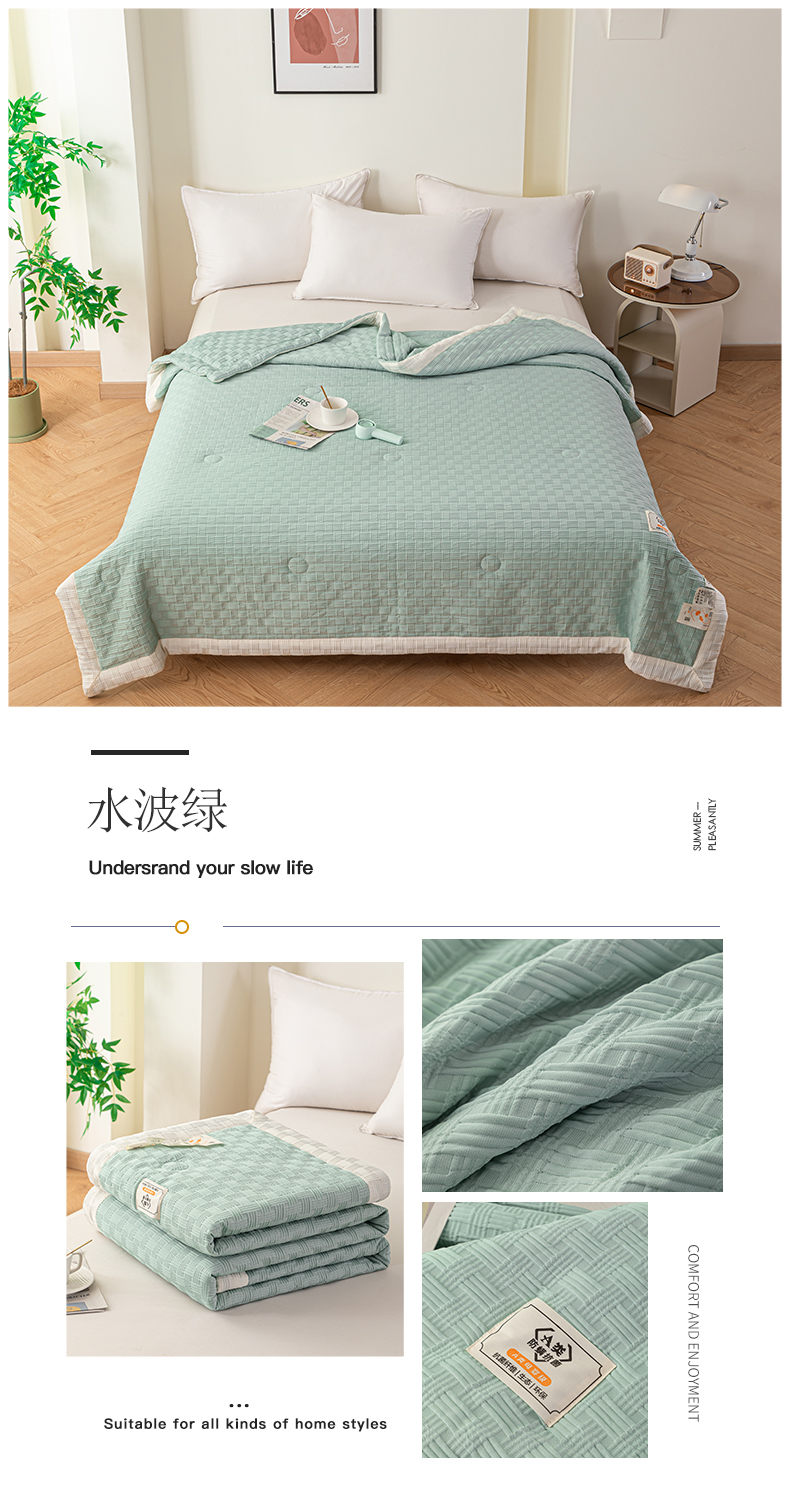 商品名称:江山被业 2025新款华夫格提花针织棉大豆纤维夏被 水波绿