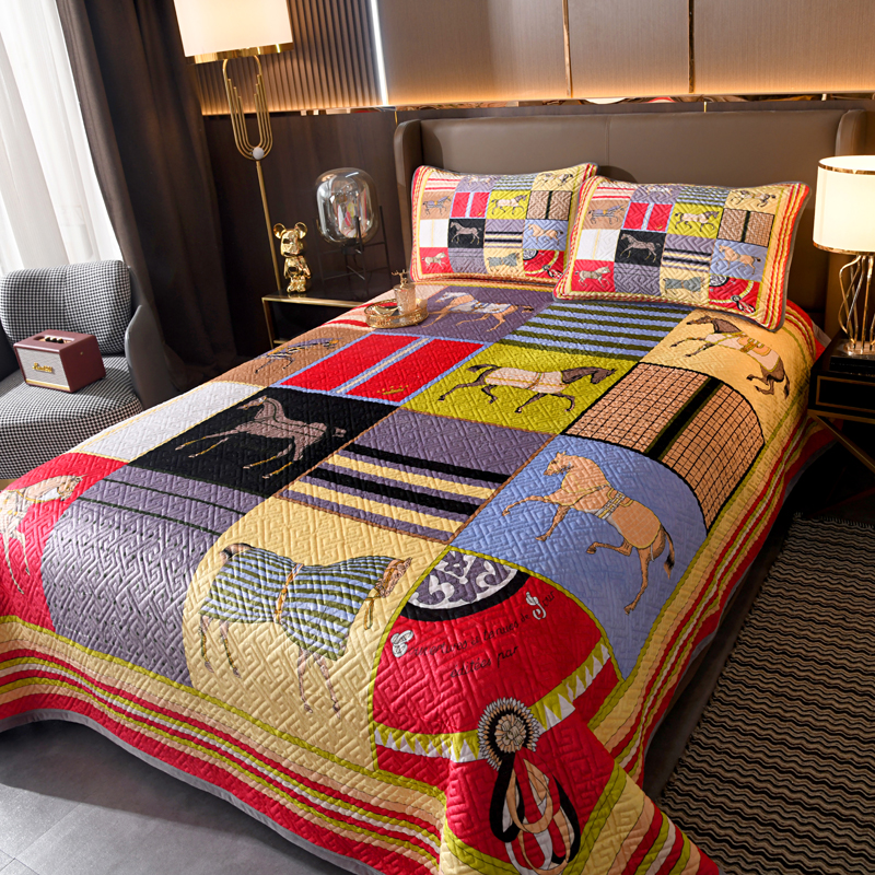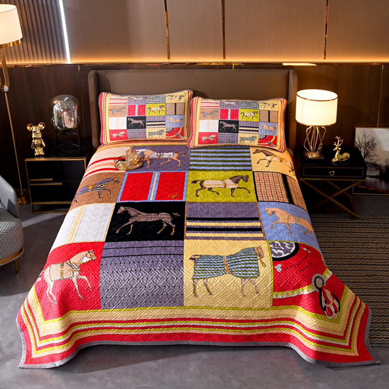 (总)爵仕家纺 2025新款凉感真丝床盖三件套,豹,大天使,宫廷马,金典,骏马白,郎世宁马,女皇,赛马场,十骏马白,驯马人,指南者