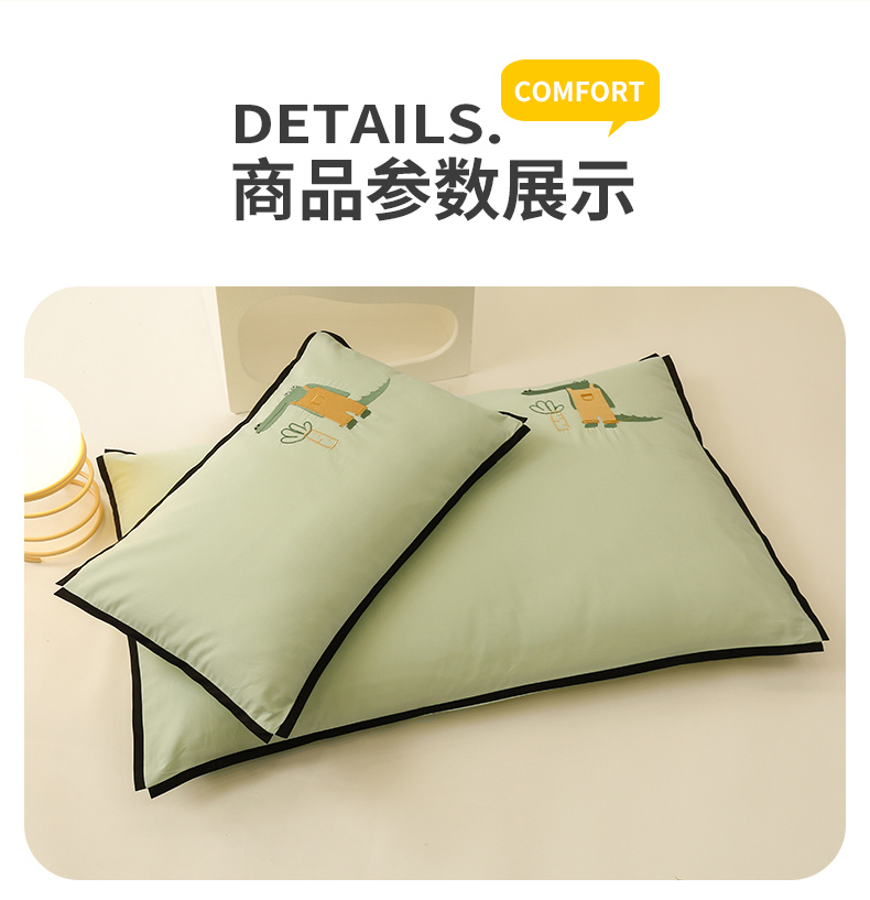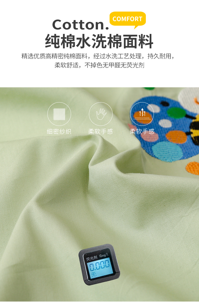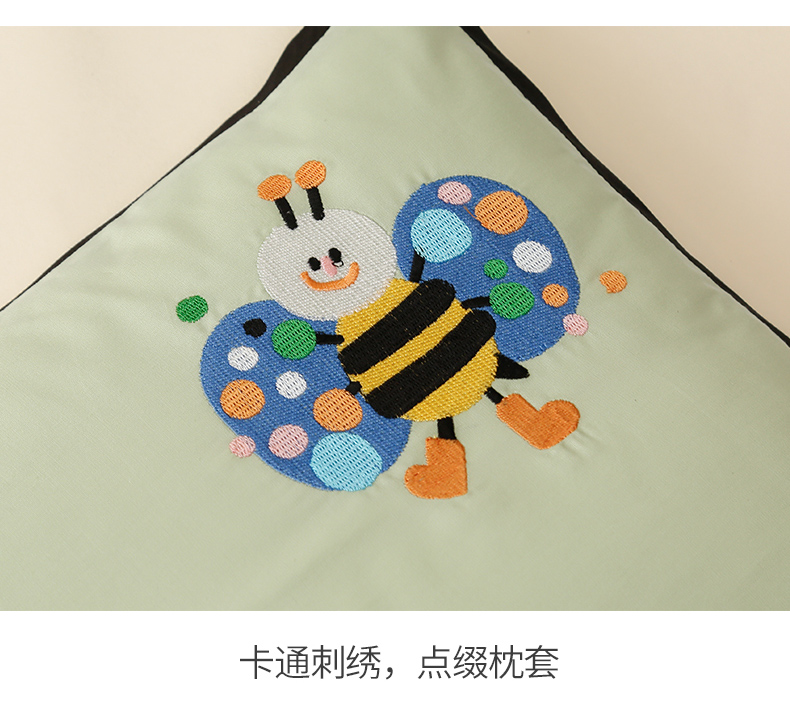 商品名称:喜多兔儿童家纺 2024新款高精密纯棉水洗棉枕套 绿色小蜜蜂