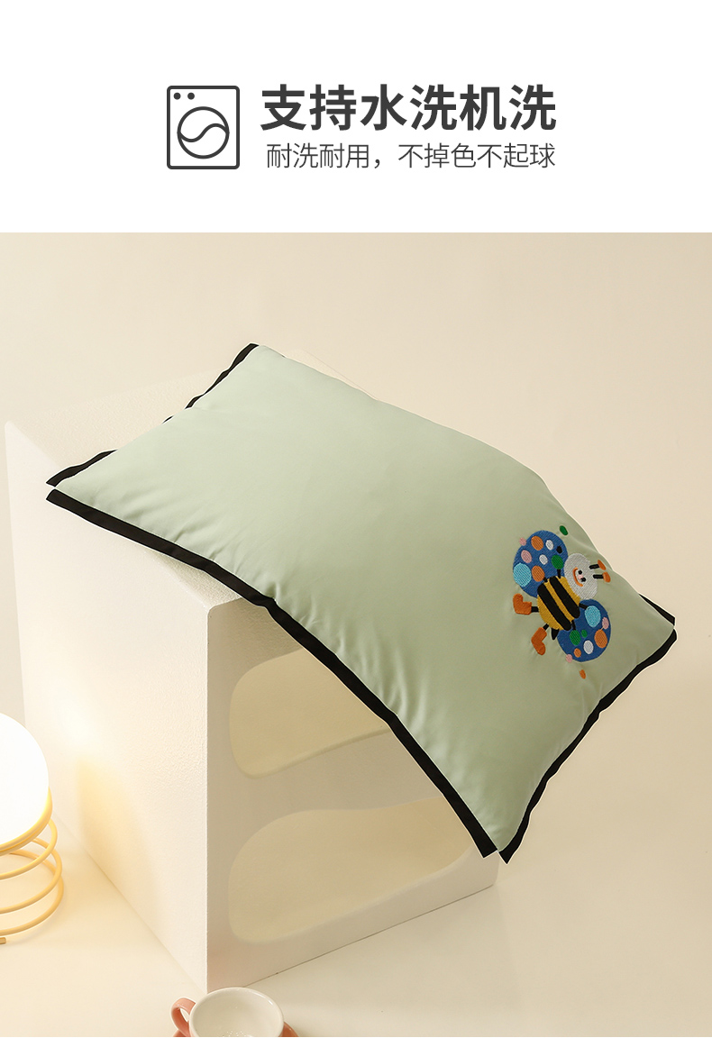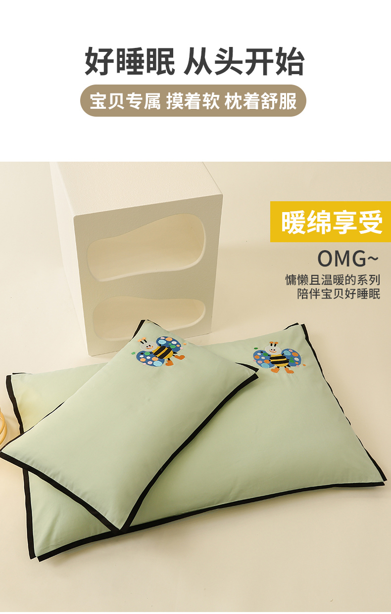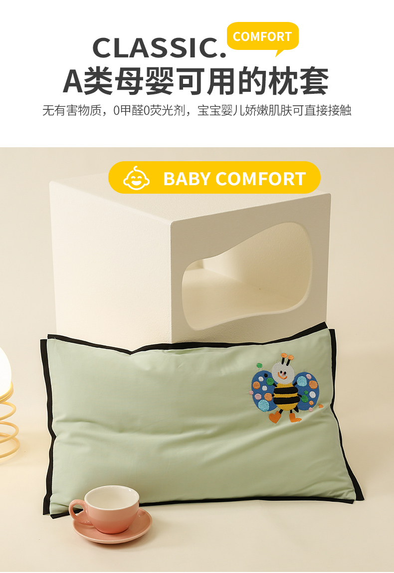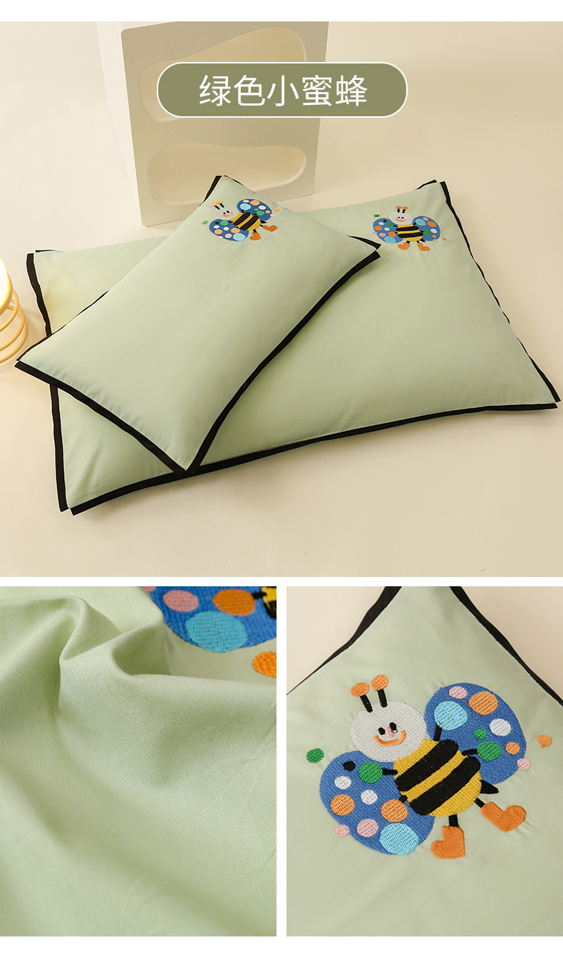 喜多兔儿童家纺 2024新款高精密纯棉水洗棉枕套 绿色小蜜蜂