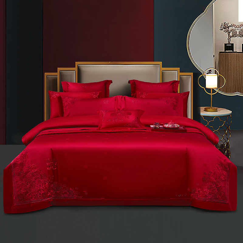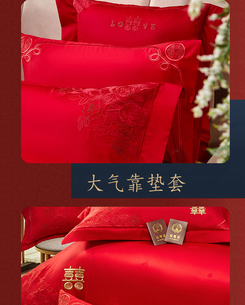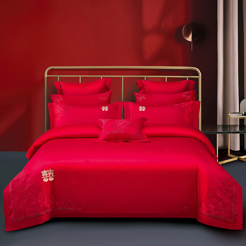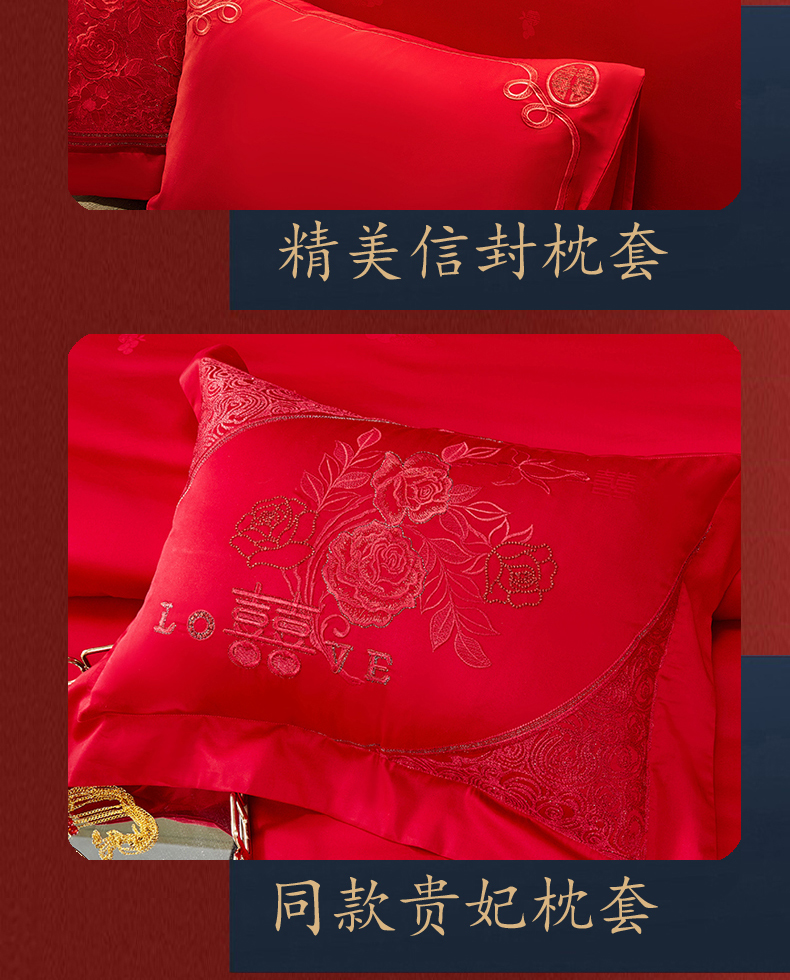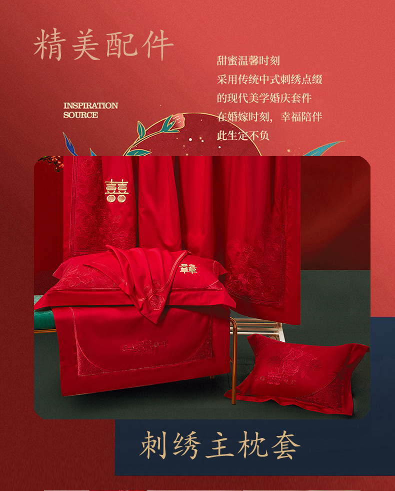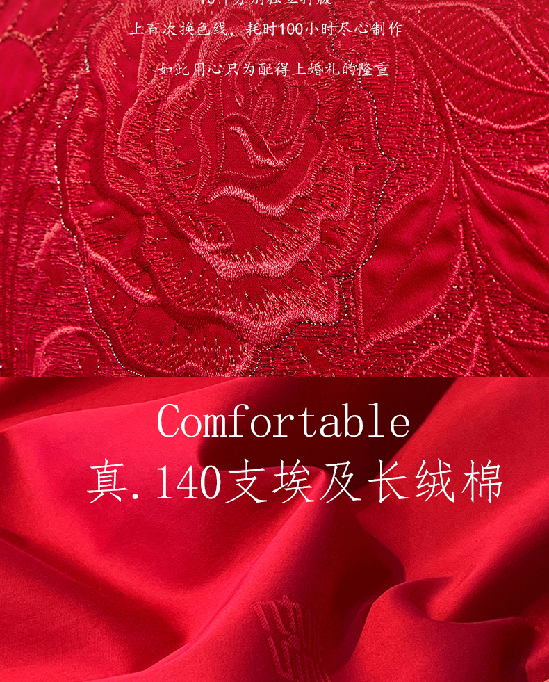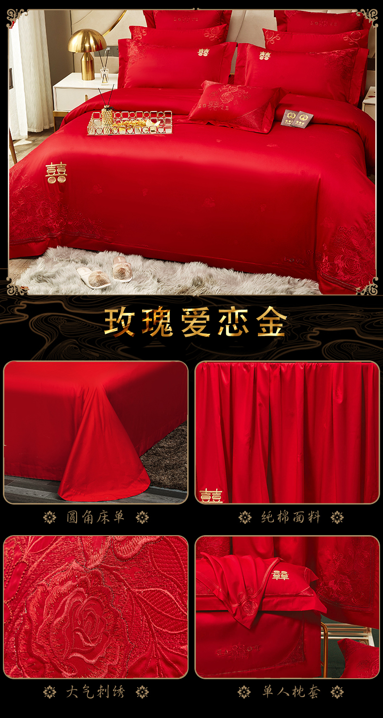 (总)蒂爵 2025新款婚庆长绒棉时尚小红书爆款刺绣婚庆四件套多件套-提花款,欢天喜地,玫瑰之恋,喜福临门,喜上眉梢,幸福嫁到