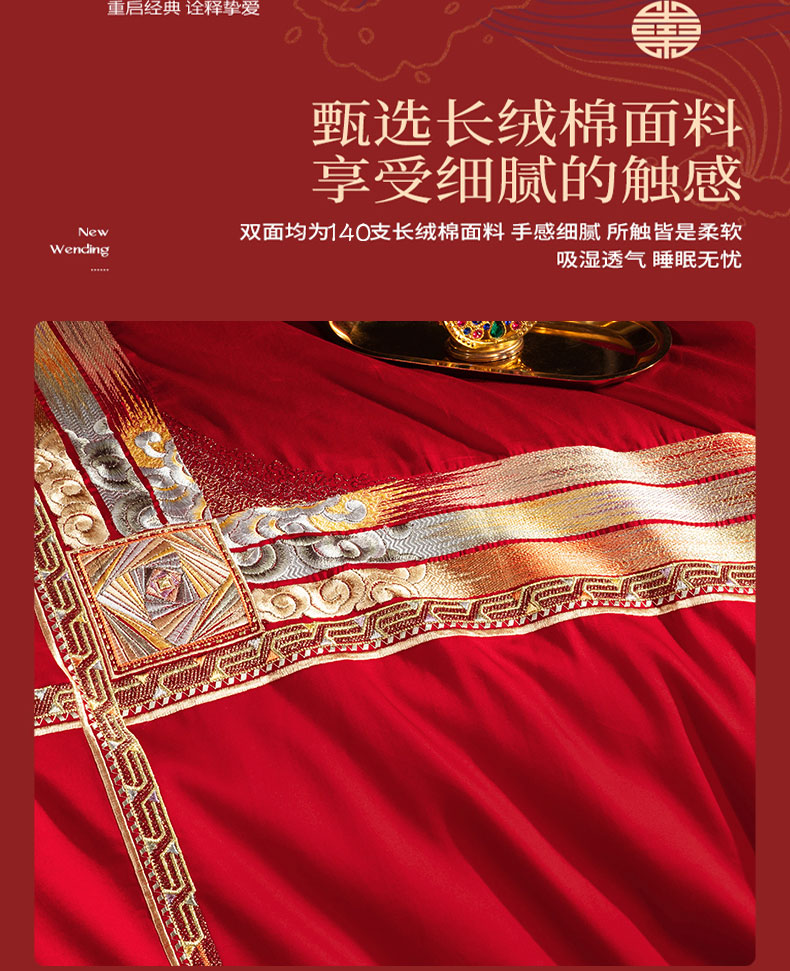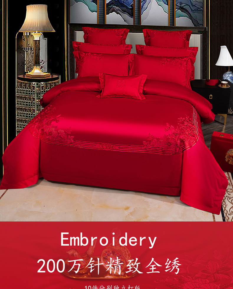 (总)蒂爵 全棉纯棉长绒棉大绣花婚庆四件套,百喜纳福,百子添福,多子多福,锦绣良缘,龙凤添喜,盛世花开