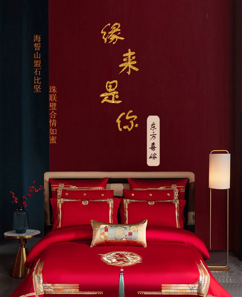 (总)蒂爵 全棉纯棉提花顶奢重工绣花工艺款婚庆四件套多件套,龙凤传奇,禧龙禧凤,缘定江山,挚爱一生
