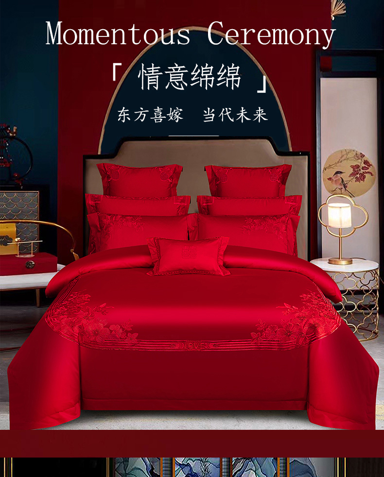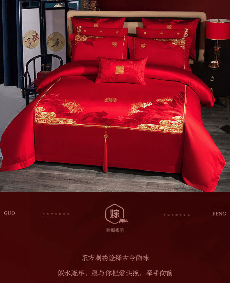 (总)蒂爵 2025新款婚庆长绒棉时尚小红书爆款刺绣婚庆四件套多件套,繁花似锦,天降喜缘,喜嫁,幸福良辰