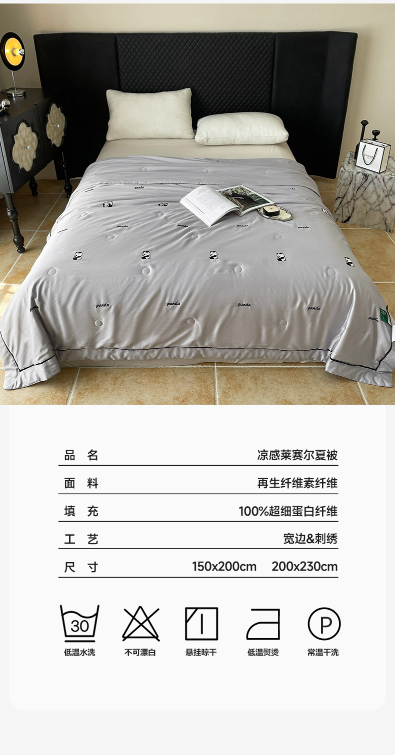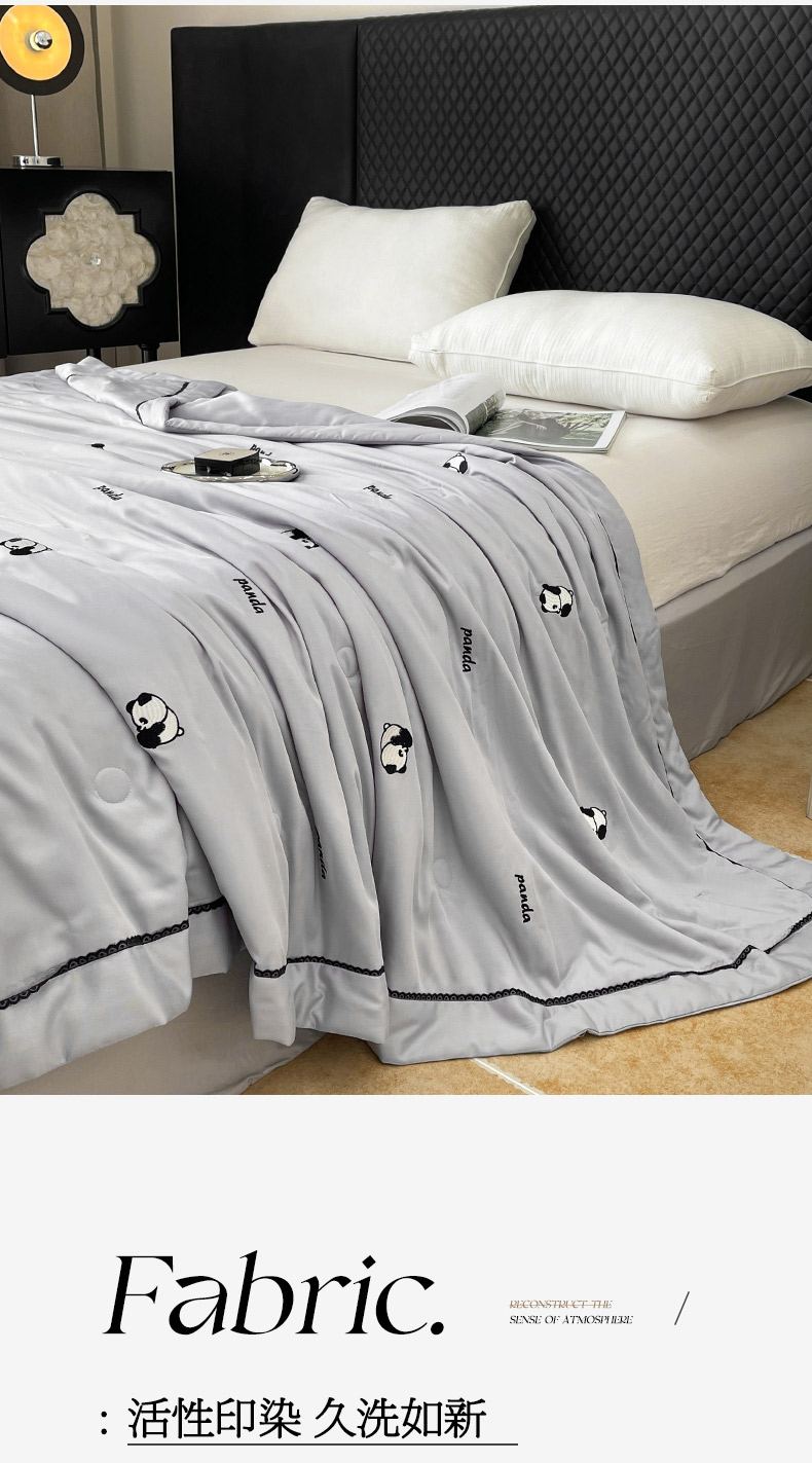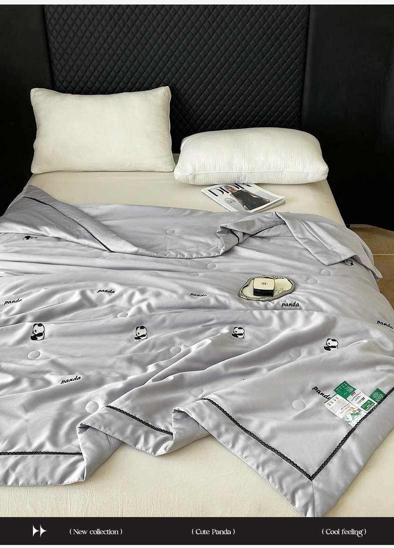 商品名称:被靠被 2024新款熊猫刺绣凉感莱赛尔夏被被子被芯 雅灰
