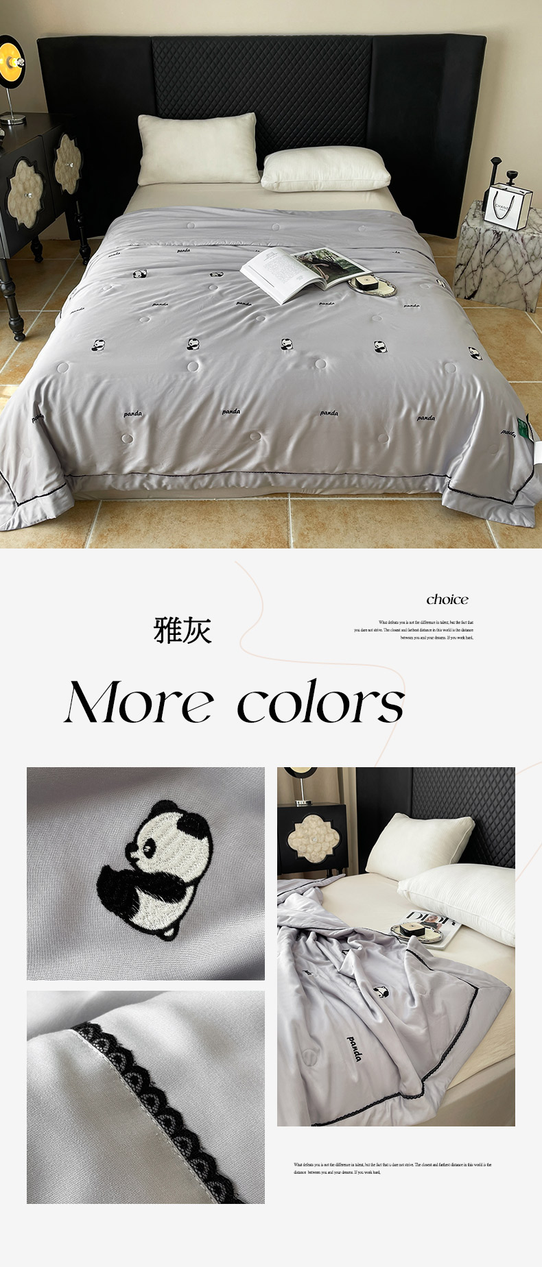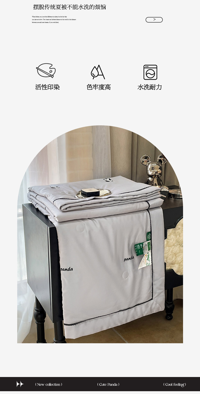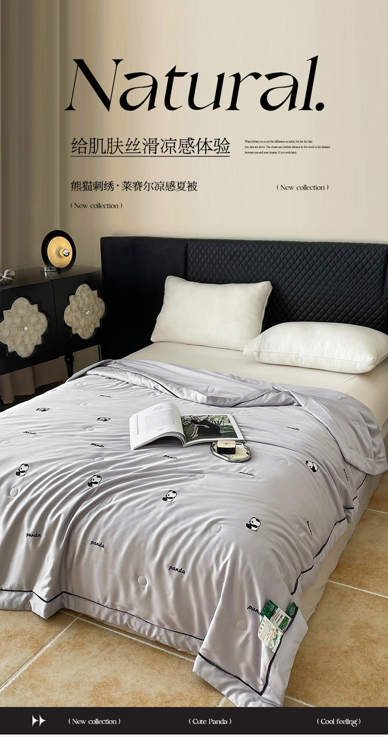 商品名称:被靠被 2024新款熊猫刺绣凉感莱赛尔夏被被子被芯 雅灰