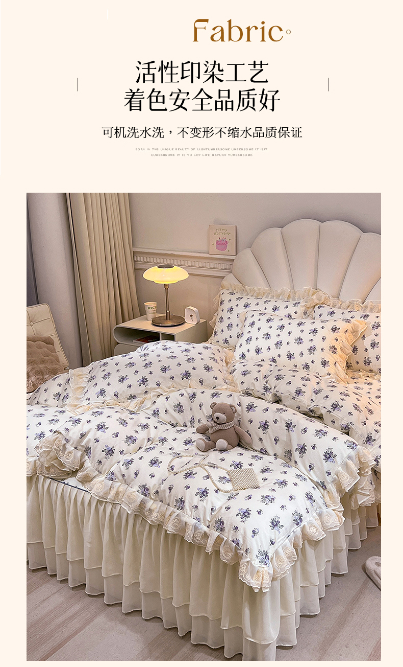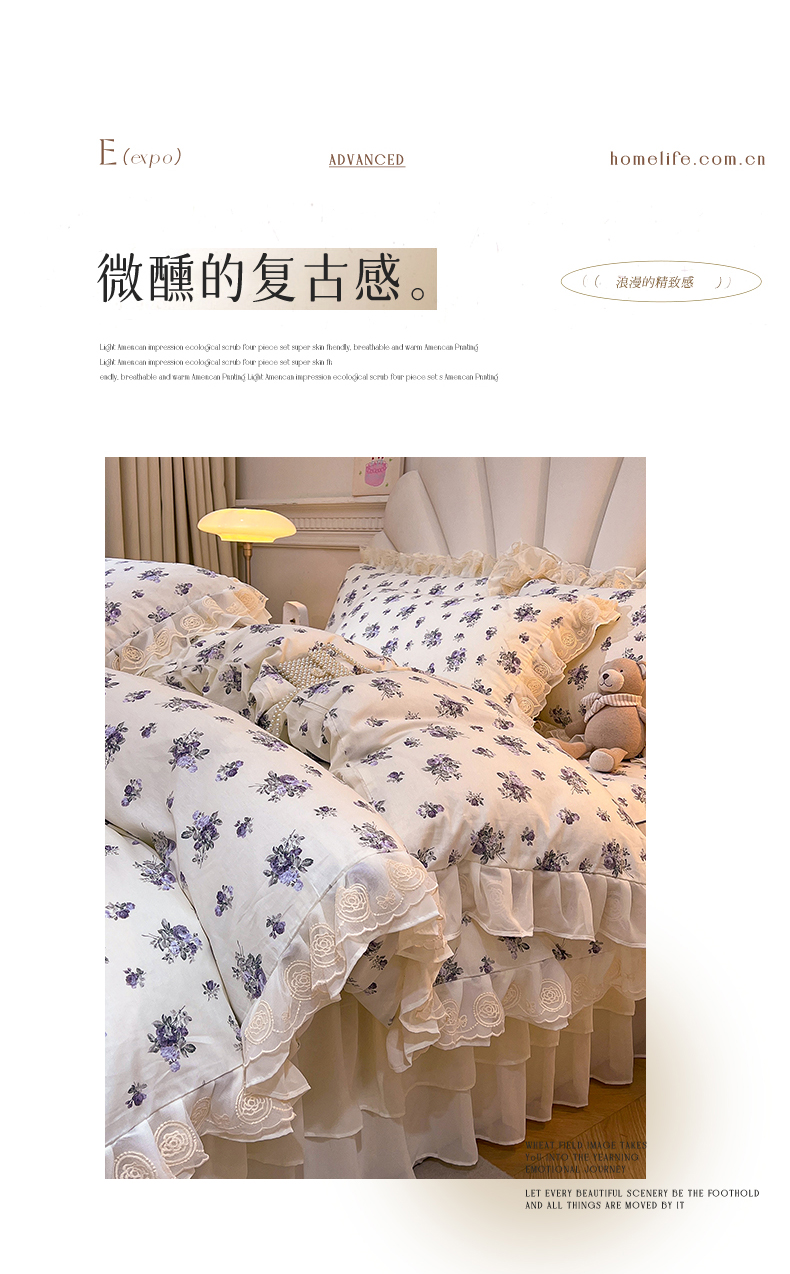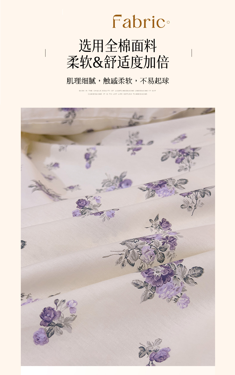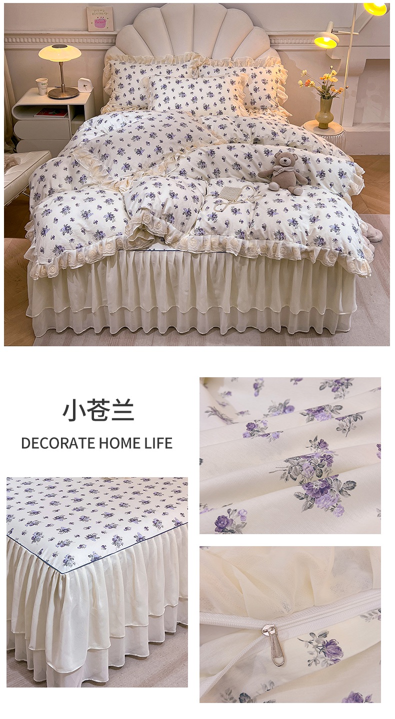 当前位置: 91家纺网 > 商品网购 > 床品套件 > 四件套 > 全棉普通四件套 > 恒爱家纺 2024新款梦幻情缘全棉公主风四件套 小苍兰
