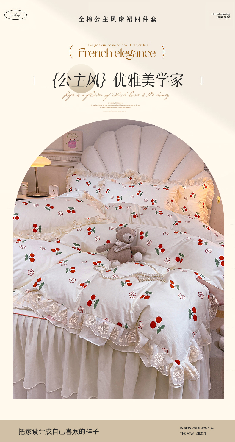 当前位置: 91家纺网 > 商品网购 > 床品套件 > 四件套 > 全棉普通四件套 > 恒爱家纺 2024新款梦幻情缘全棉公主风四件套 甜蜜时光