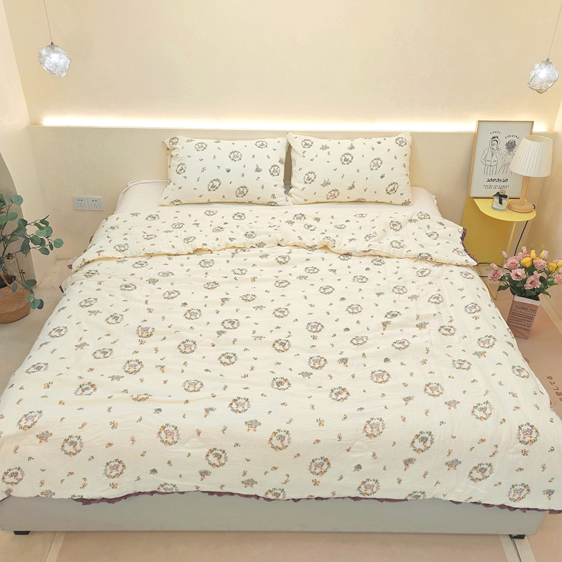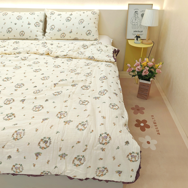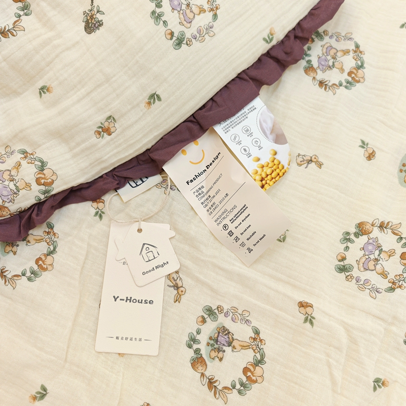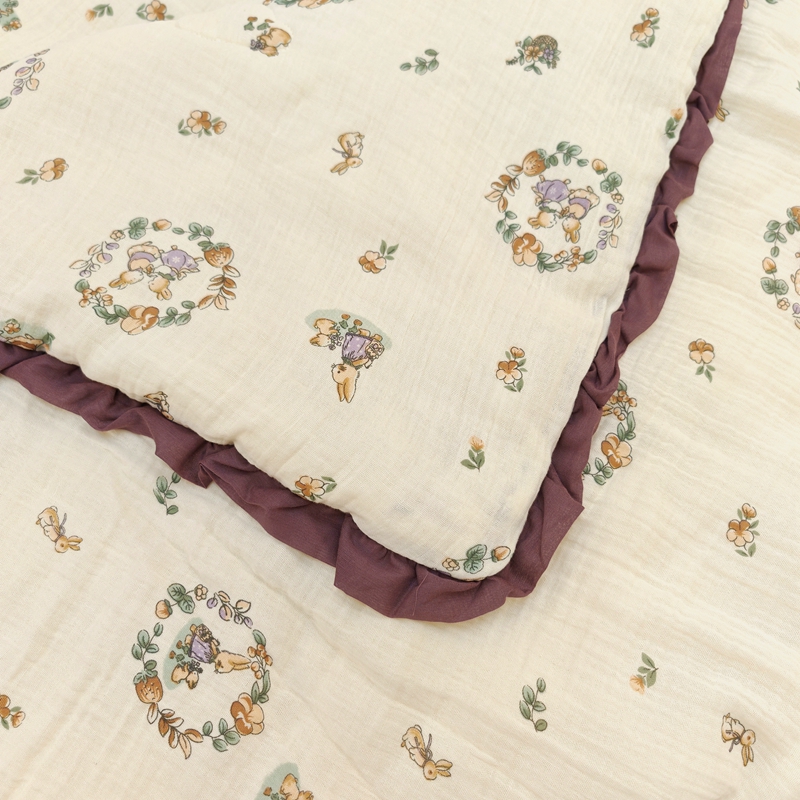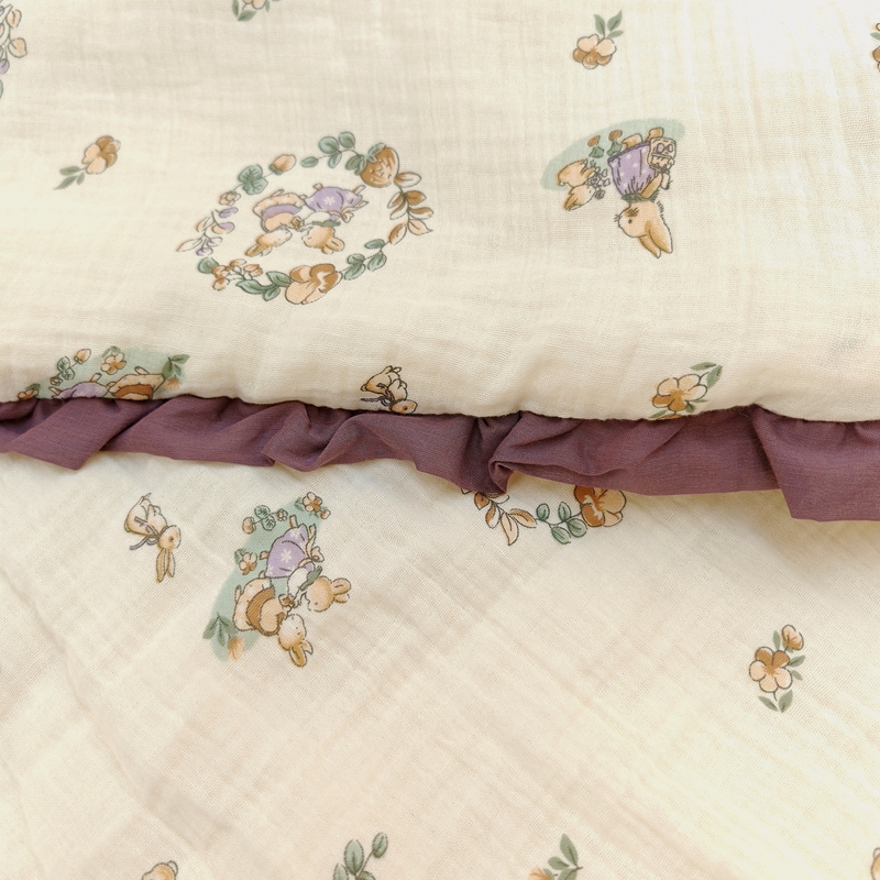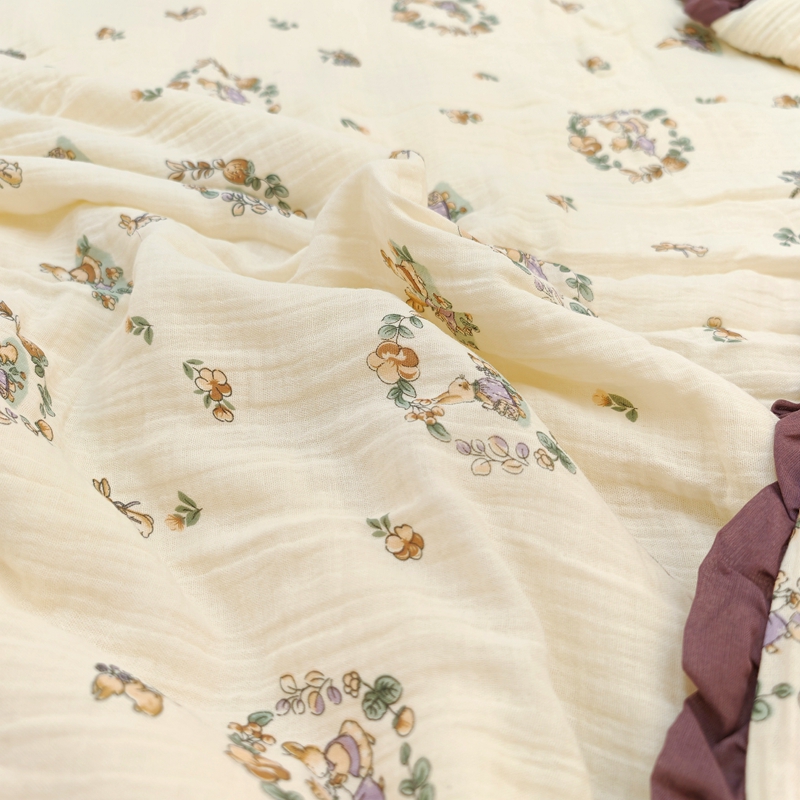 商品名称:有货 2024新款双层皱皱纱大豆被 兔小花