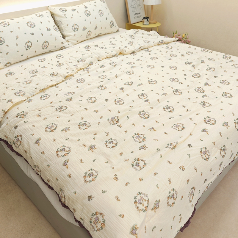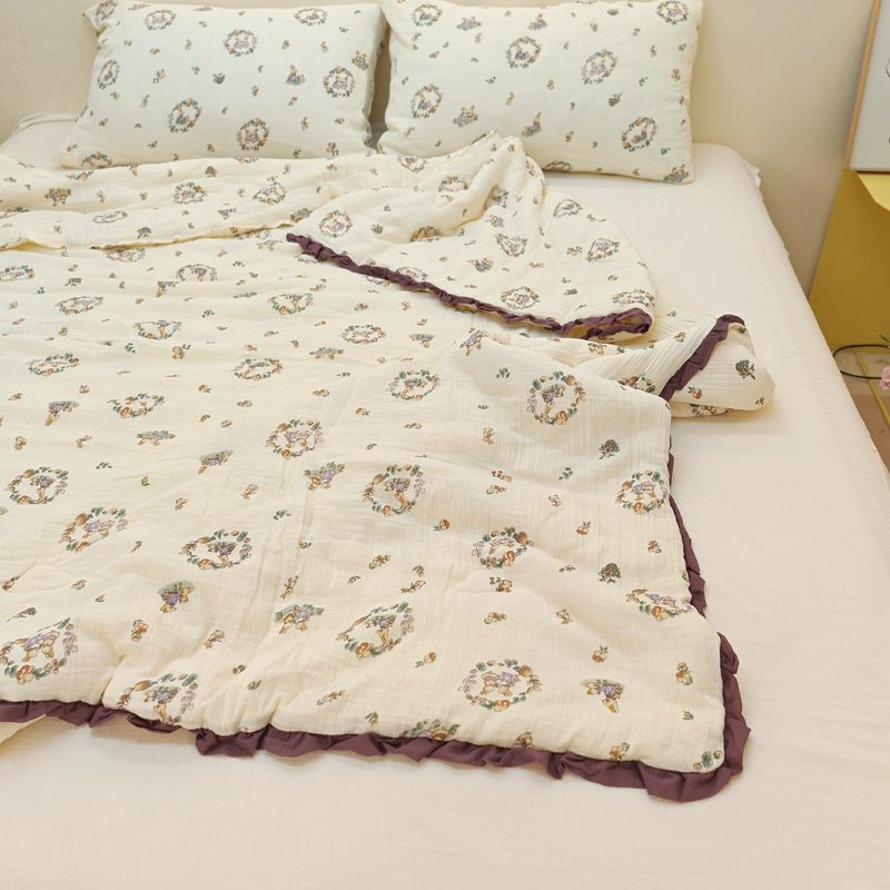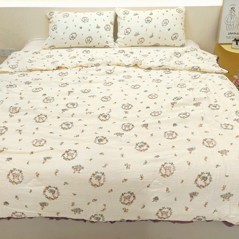 (总)有货 2023新款韩式棉麻泡泡纱印花四季被,艾薇,浪漫,青柠,森林兔,森屿,树莓,桃夭,小可爱,伊甸,樱粟