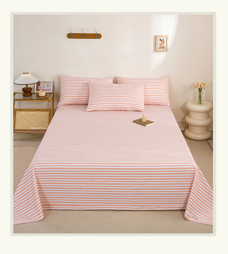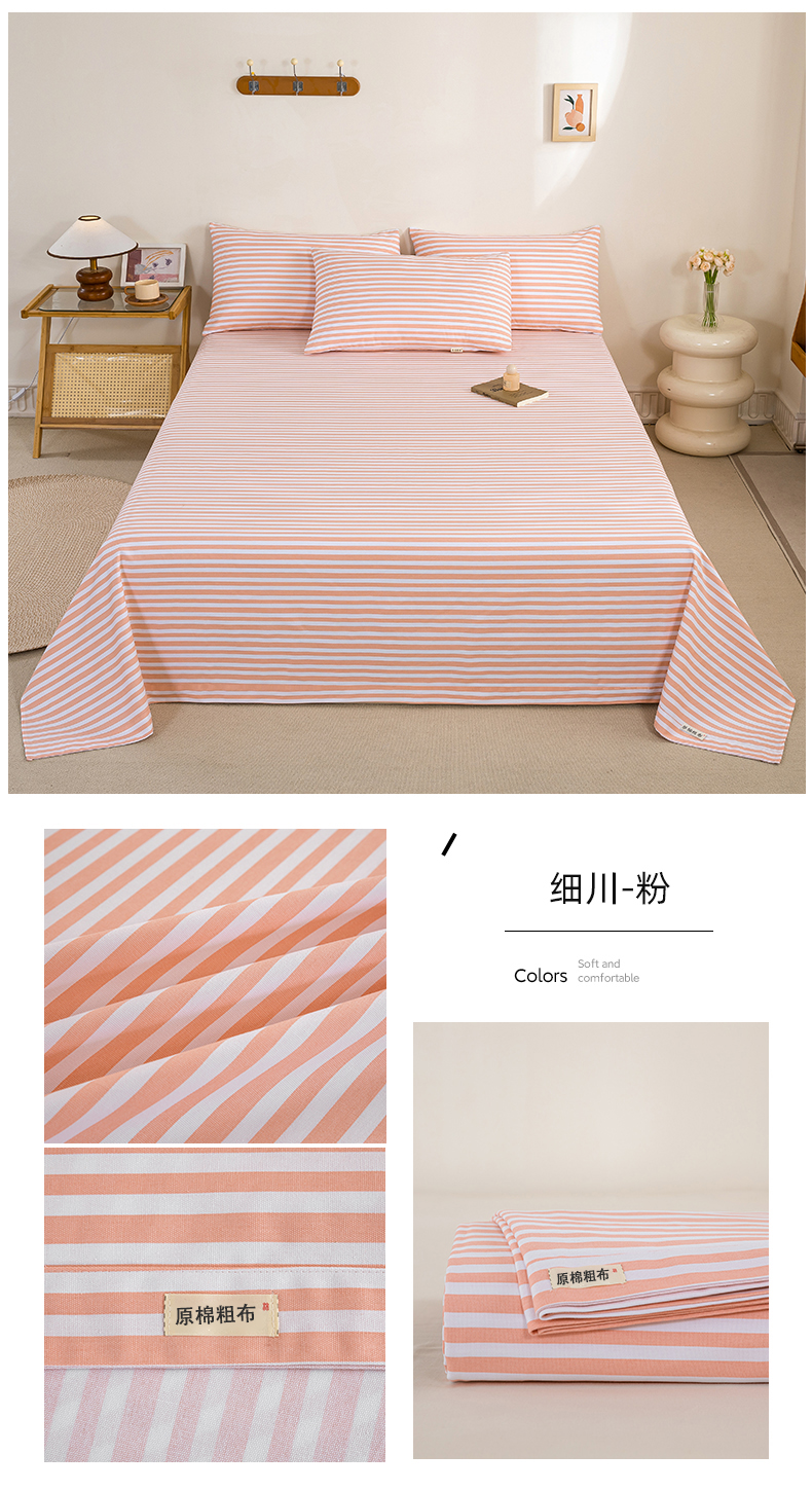 鸣升 新款舒适透气100%全棉老粗布床单 细川(粉)