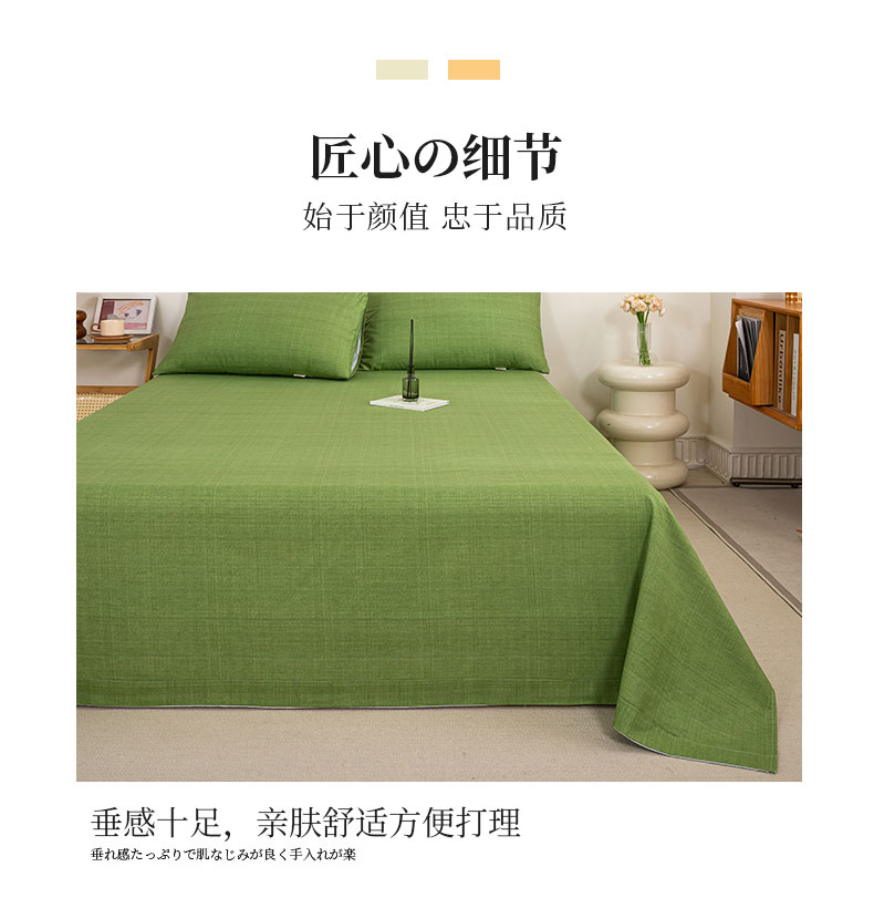 • 91家纺网 家纺一手货源 找家纺 鸣升 新款舒适透气100%全棉老粗布床单 樱花-绿