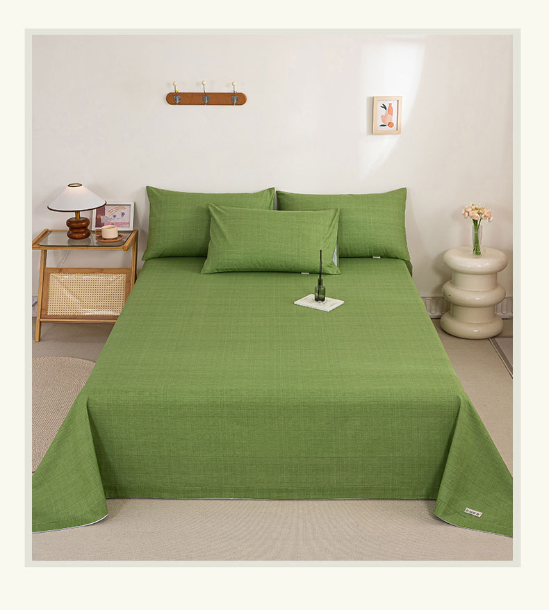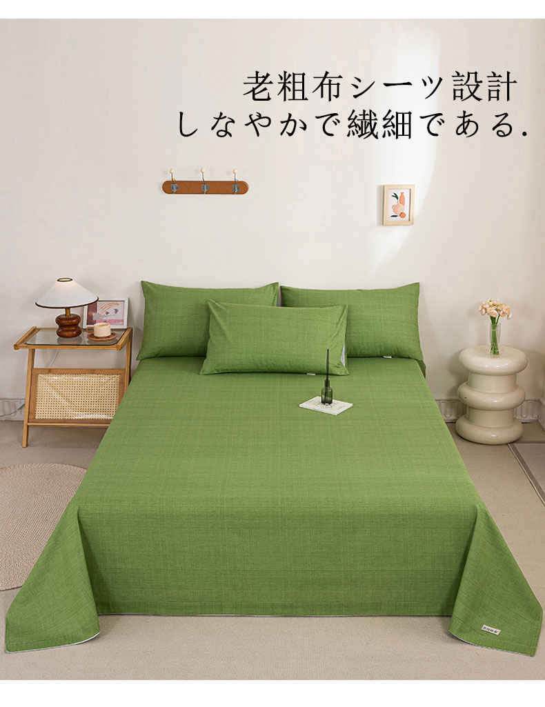 鸣升 新款舒适透气100%全棉老粗布床单 樱花-绿