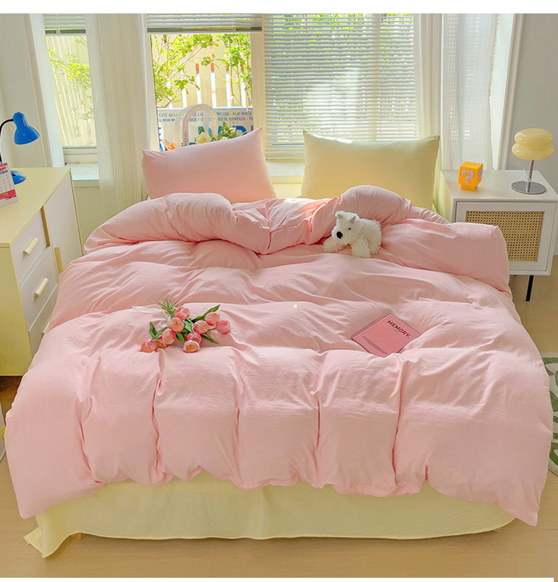 艾特你 2024新款A类水洗棉被套纯色被套单被套素色被套 混搭-粉黄