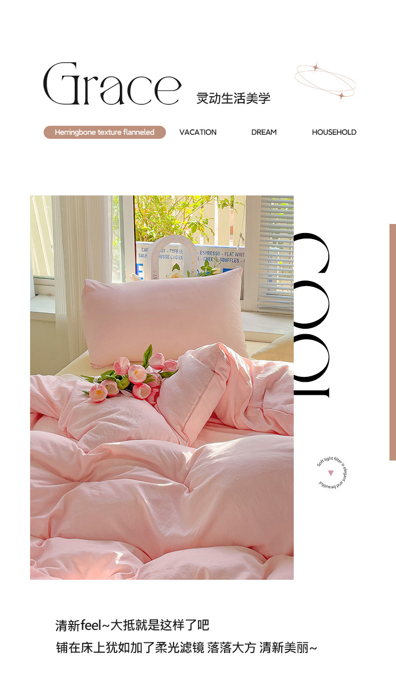 商品名称:艾特你 2024新款A类水洗棉被套纯色被套单被套素色被套 混搭-粉黄