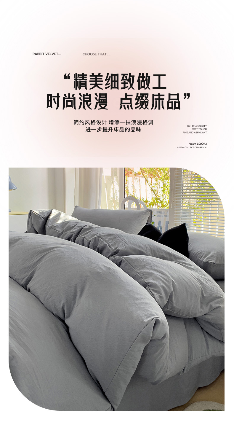 当前位置: 91家纺网 > 商品网购 > 床品套件 > 四件套 > 水洗棉四件套 > 艾特你 2024新款A类ins风水洗棉四件套纯色四件套混搭素色四件套 浅灰色