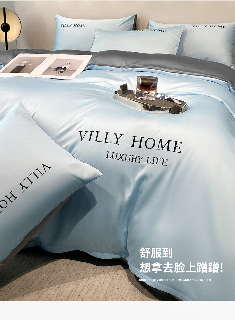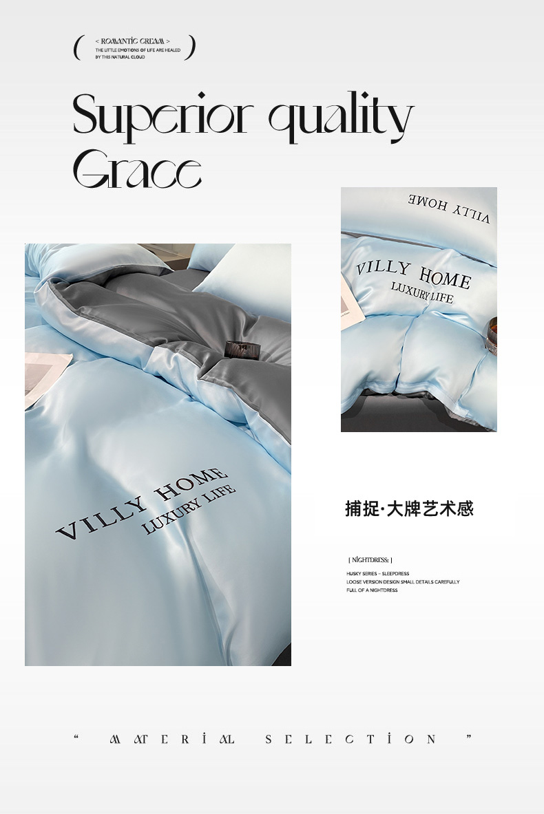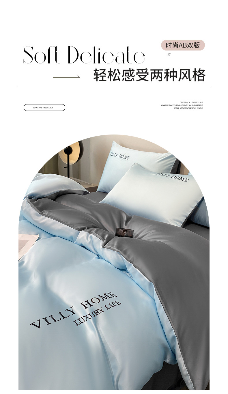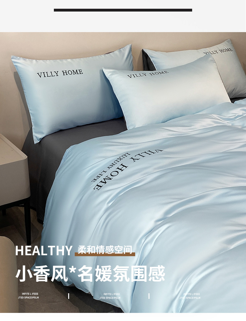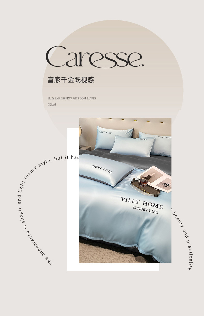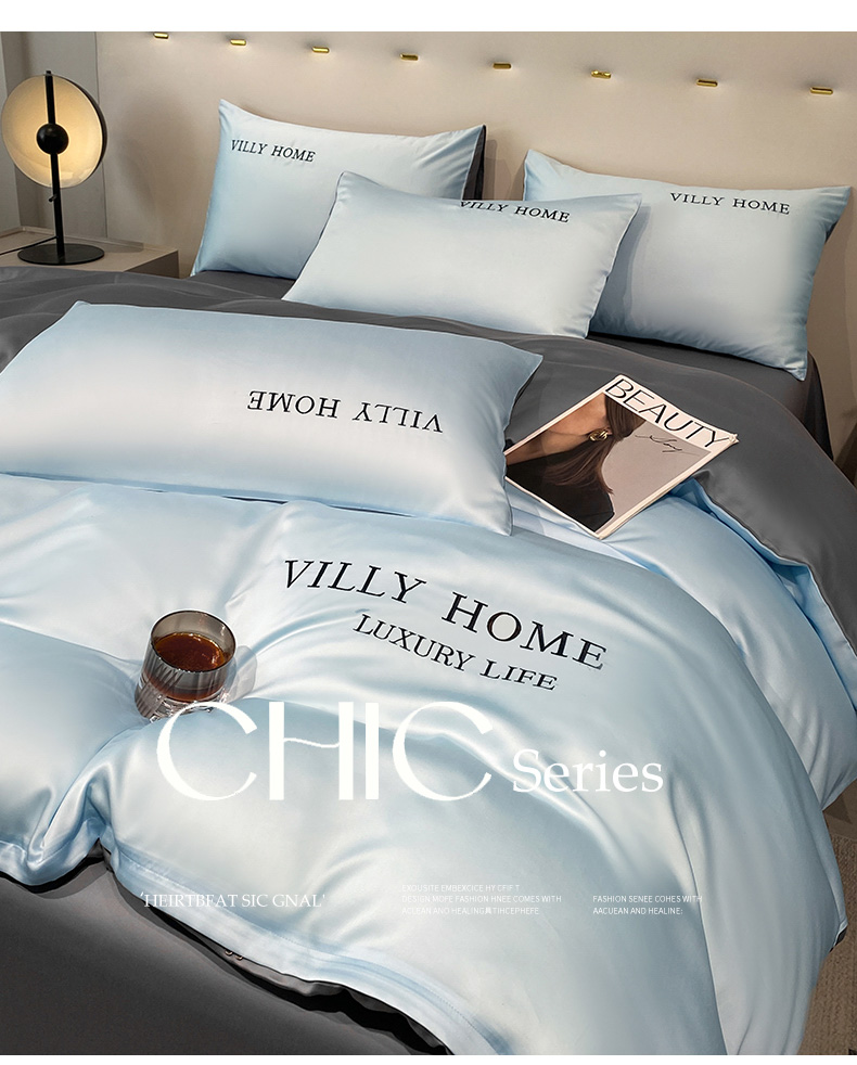 当前位置: 91家纺网 > 商品网购 > 床品套件 > 四件套 > 水洗真丝四件套 > 眠帛家居 2024新款水洗真丝绣花四件套-惟丽系列 天空蓝-经典灰