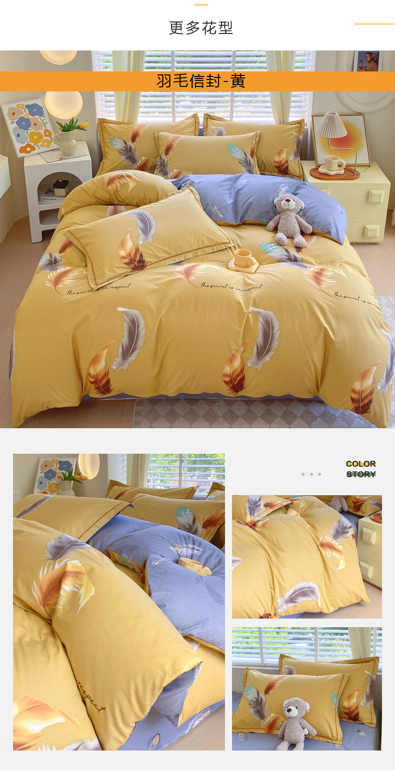 (总)星期三 2021新款时尚羽毛系列全棉13372四件套(加老板微信有会员价),缤纷羽毛-粉,缤纷羽毛-绿,羽叶,羽毛信封-黄